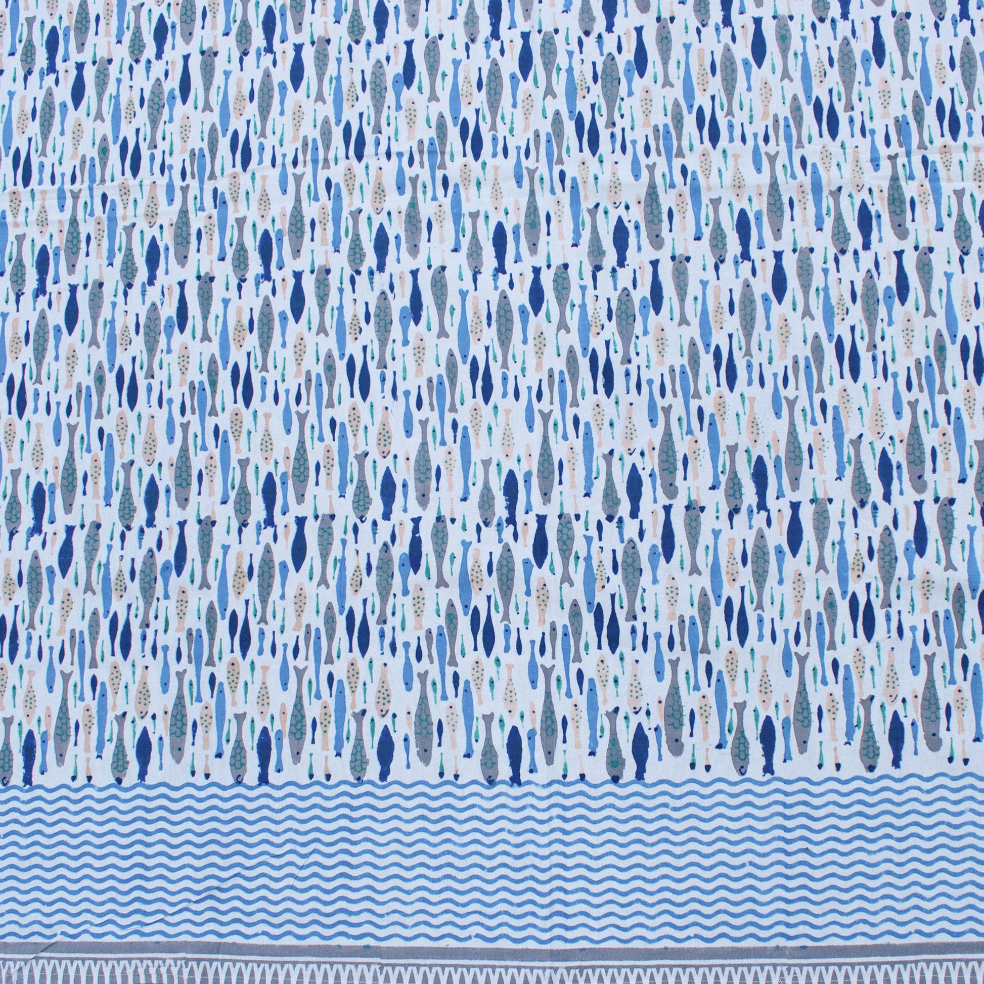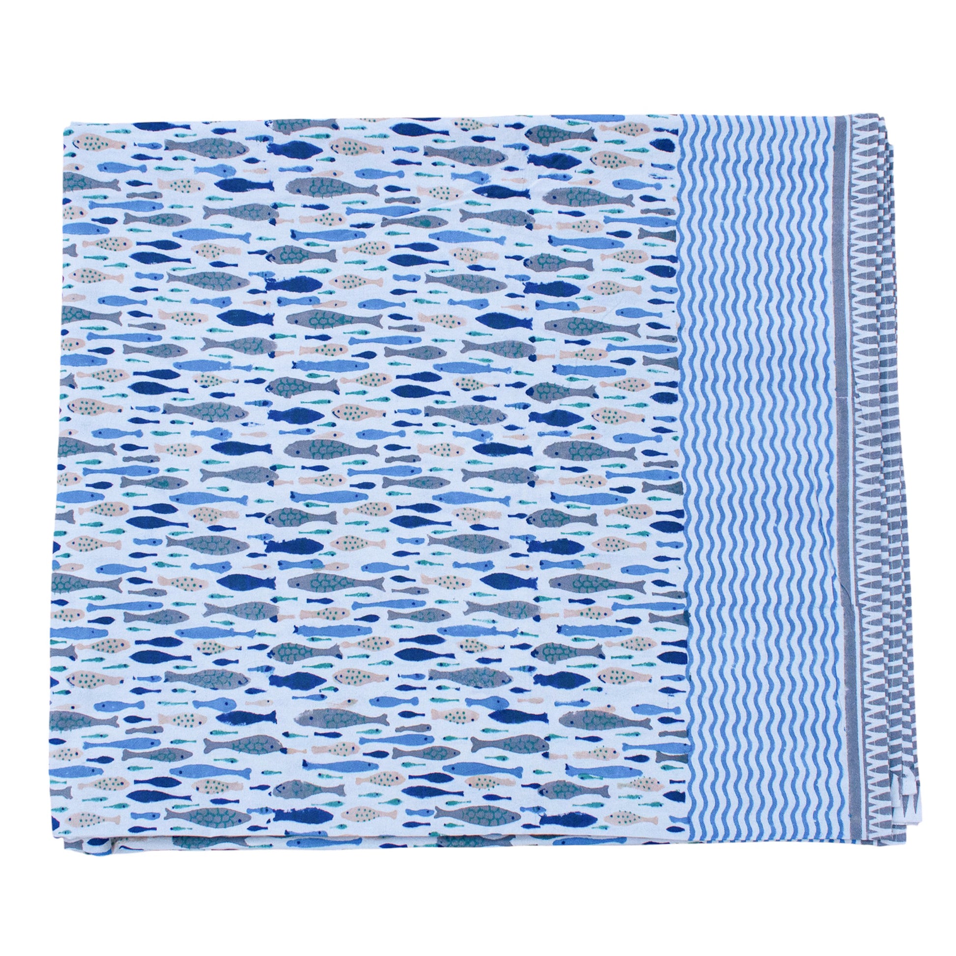 Block Print Tablecloth Cotton, Bohemian Table Cover, Rustic Dining Decor - 90x108
