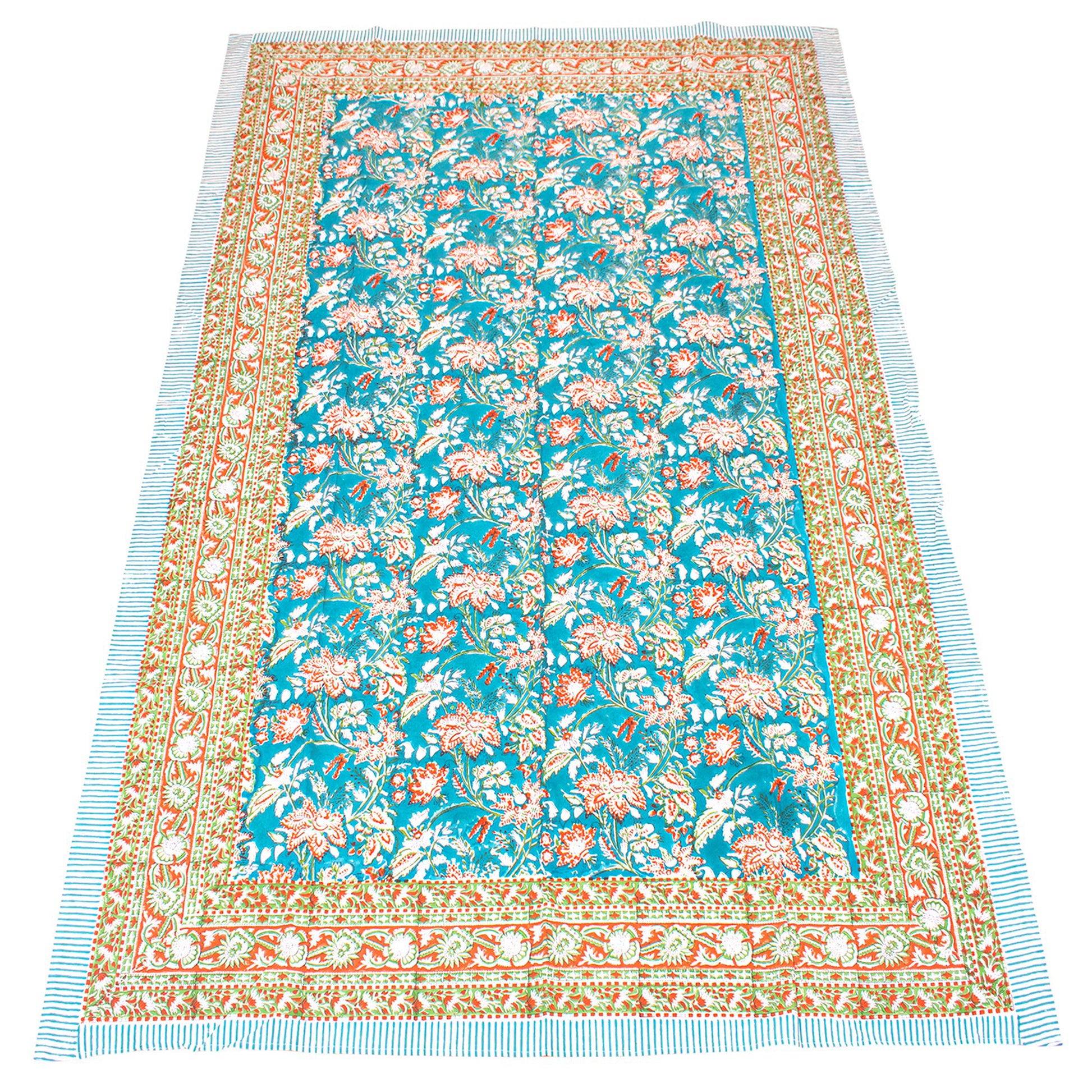 Brighten your table with this floral hand block print tablecloth, made from breathable cotton fabric. Its colorful boho-inspired design brings life to casual breakfasts, outdoor picnics, or festive dinners. Handcrafted using traditional printing techniques, this table cover adds artistic flair to your kitchen or dining area.