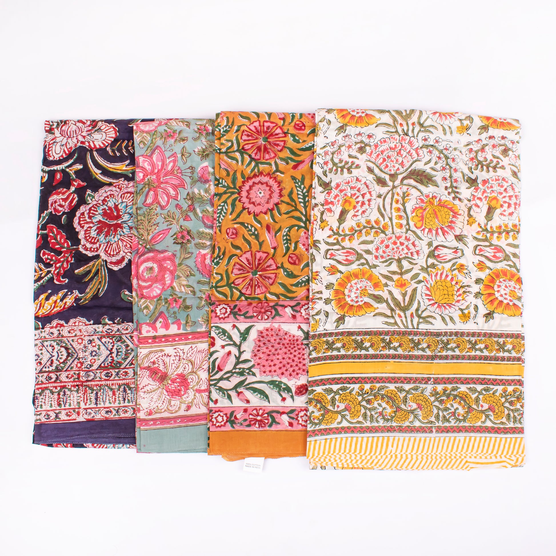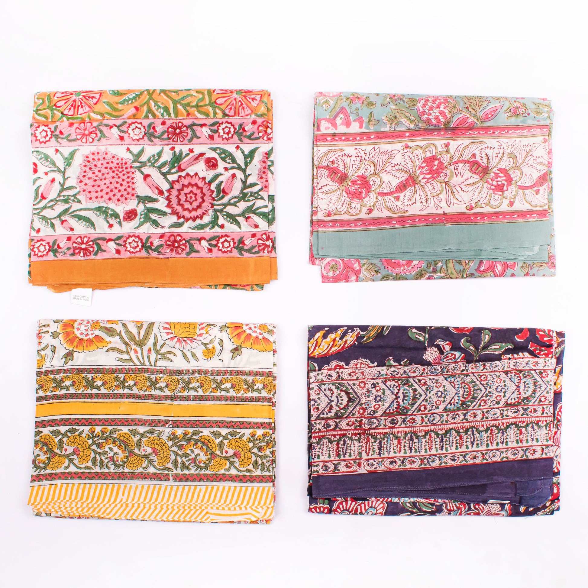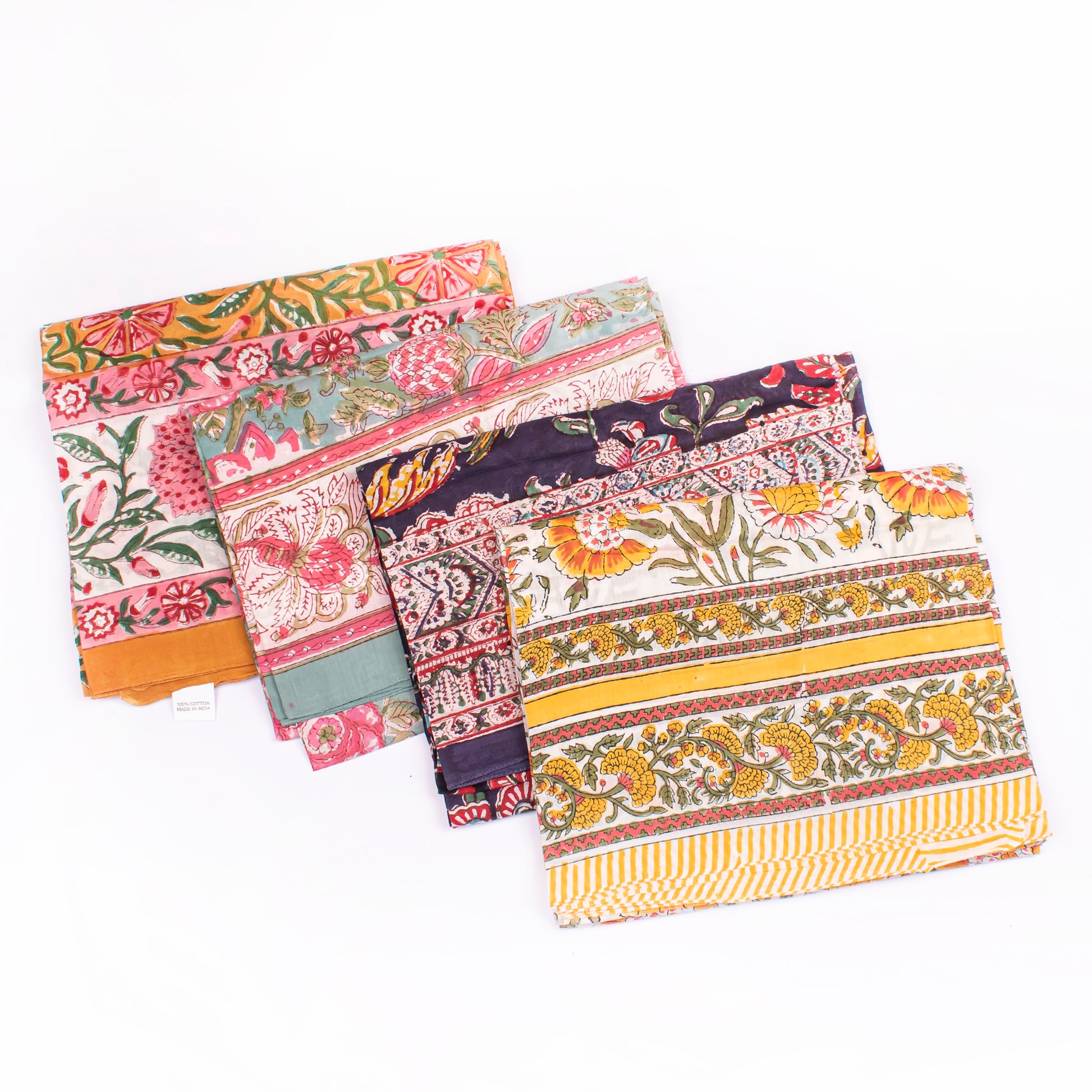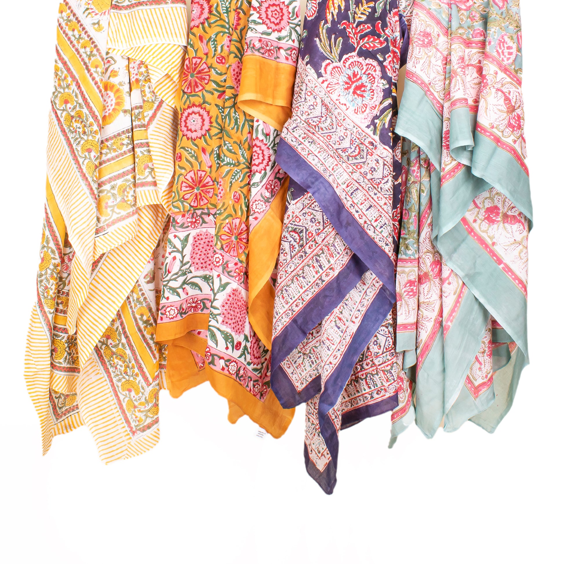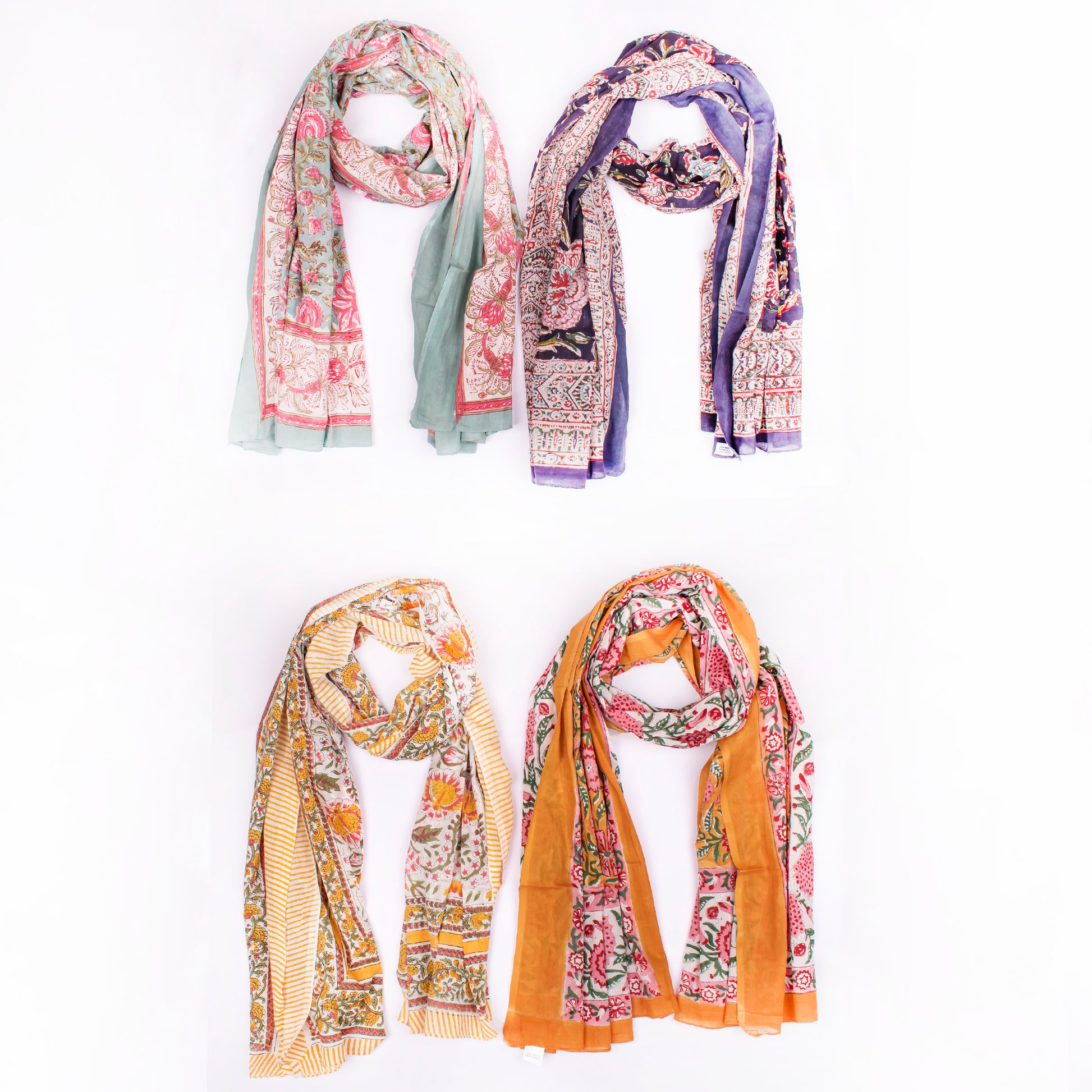 Combo of 4 - Summer Cover-Up, Hand Block Printed Scarves For Women, Sarong Beach Wrap, Lightweight Washable Pareo, Women’s Hand Block Scarf