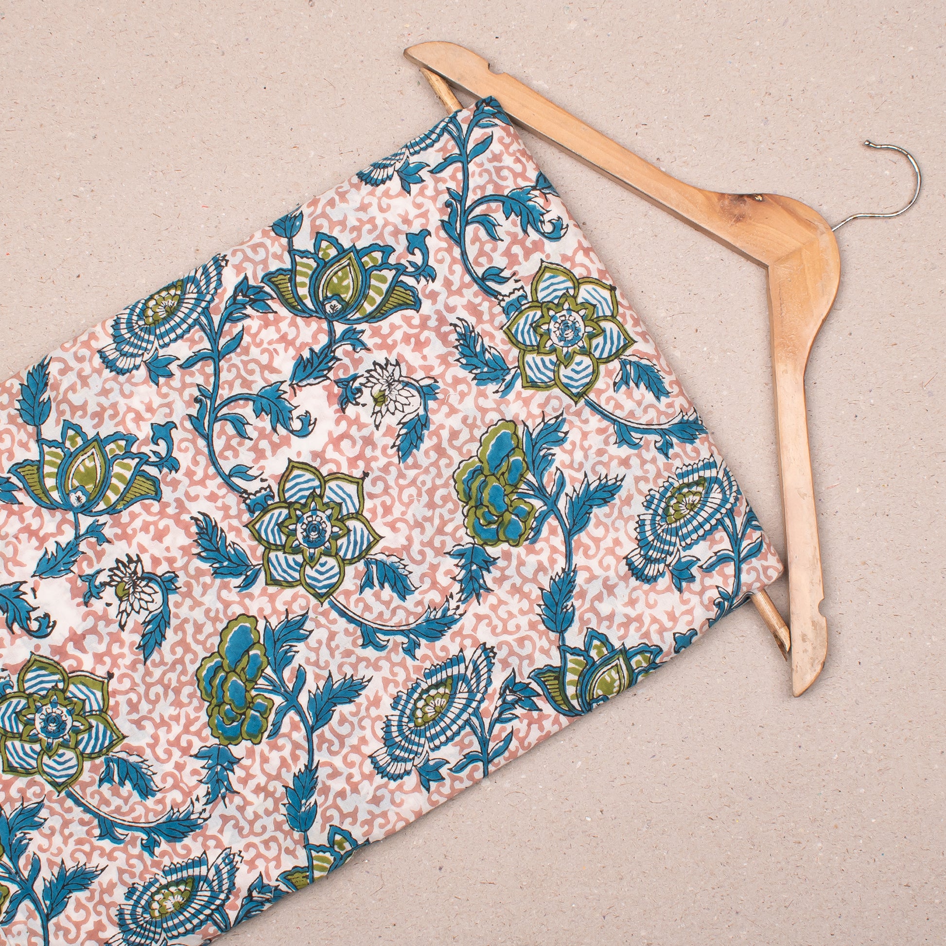 This hand block printed cotton fabric is one of those things you just fall in love with. The floral patterns are soft and subtle, and because it’s printed the traditional way like block printing technique. The cotton’s super lightweight and breathable, so it’s easy to sew and comfy to wear for a long time. Whether you’re making a dress, a scarf, some patchwork, or even a cushion cover, table cover or craft project this kind of fabric brings everything to life. If you’re into DIY, love making gifts, or just enjoy working with beautiful materials, this one’s going to be a favorite. It adds that handmade soul that makes your creations feel extra meaningful.