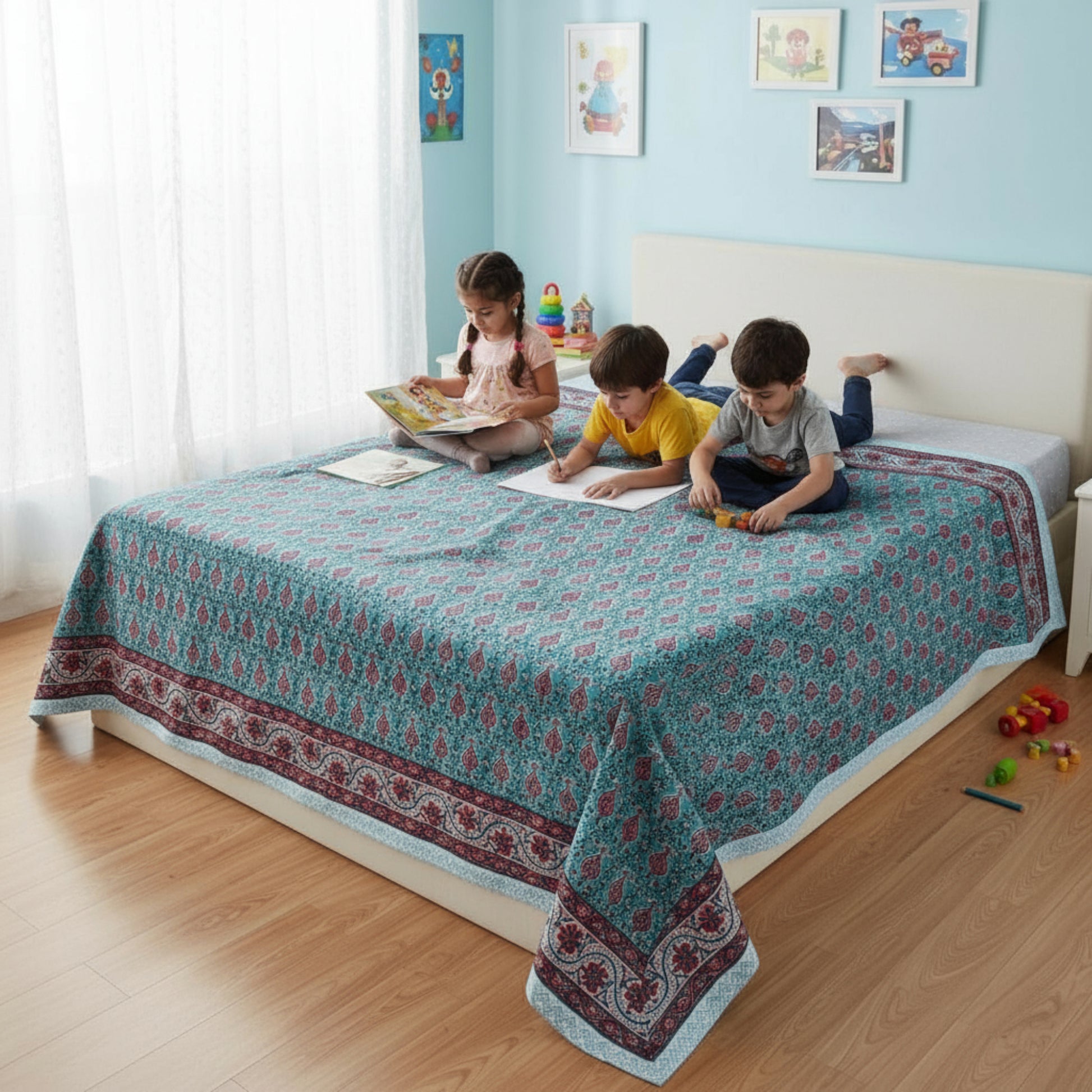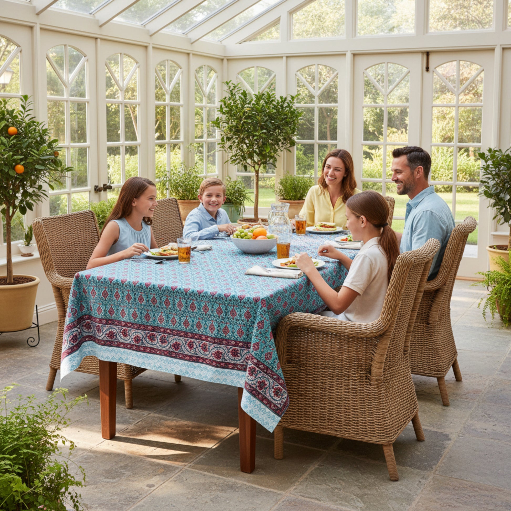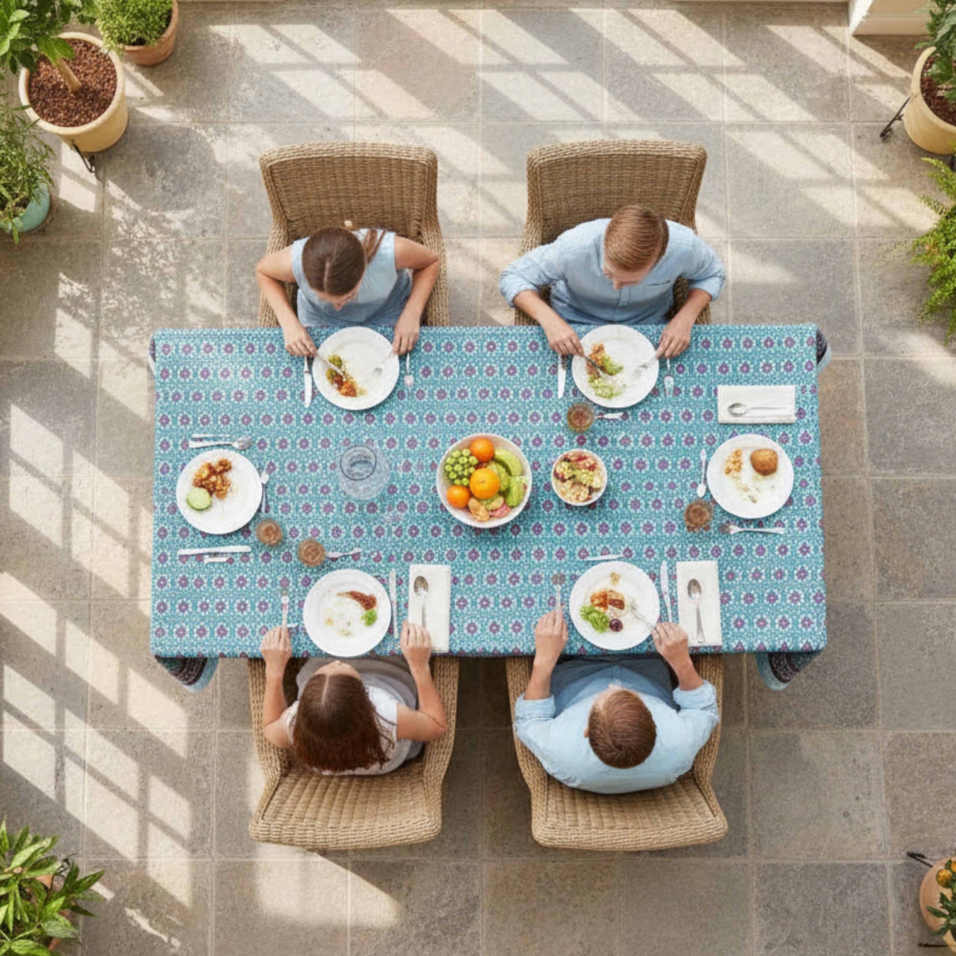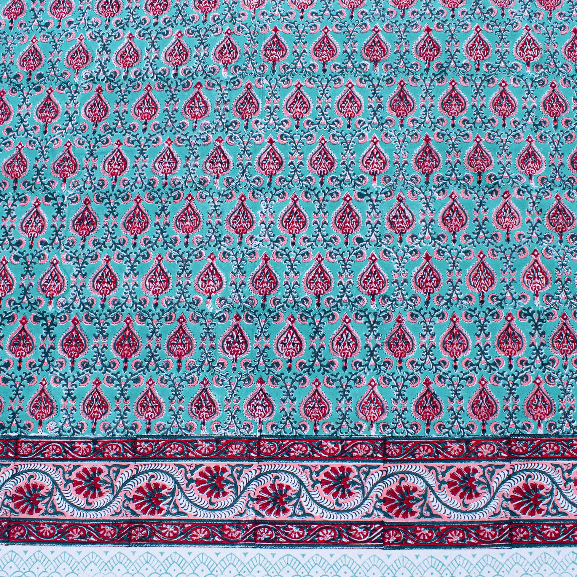 Brighten your table with this floral hand block print tablecloth, made from breathable cotton fabric. Its colorful boho-inspired design brings life to casual breakfasts, outdoor picnics, or festive dinners. Handcrafted using traditional printing techniques, this table cover adds artistic flair to your kitchen or dining area.