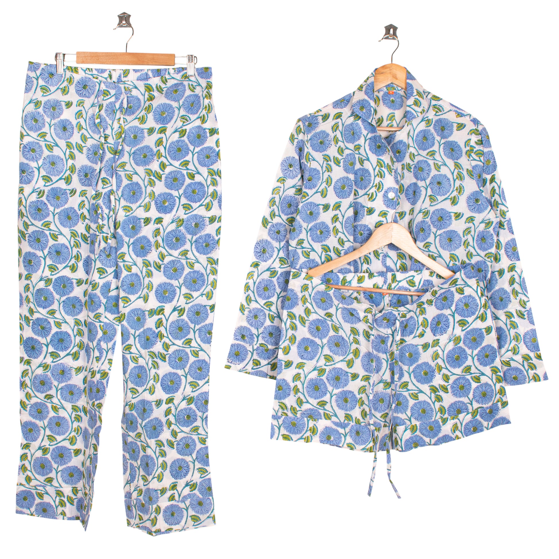 Experience the perfect blend of comfort, craftsmanship, and style with our Women’s 100% Cotton Block Print PJ Set. Made from soft, breathable cotton, this pajama set keeps you cool in summer and cozy in winter, ensuring year-round comfort. Each piece is hand block printed by skilled artisans, giving your sleepwear a unique and timeless character that stands out from mass-produced designs.
