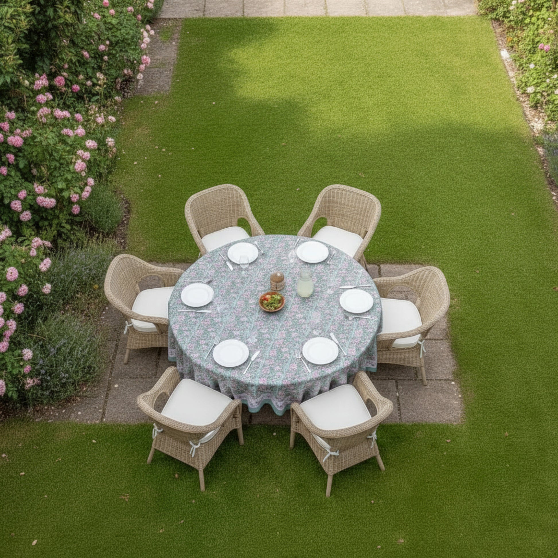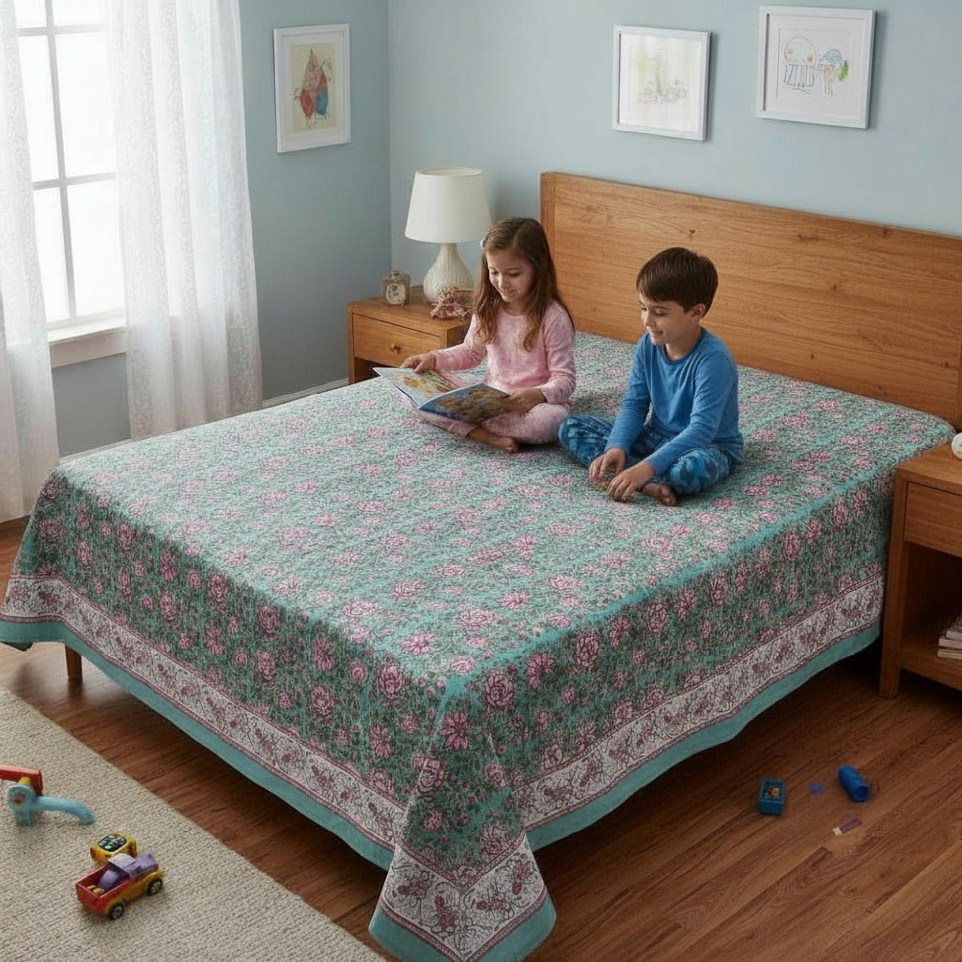 Brighten your table with this floral hand block print tablecloth, made from breathable cotton fabric. Its colorful boho-inspired design brings life to casual breakfasts, outdoor picnics, or festive dinners. Handcrafted using traditional printing techniques, this table cover adds artistic flair to your kitchen or dining area.