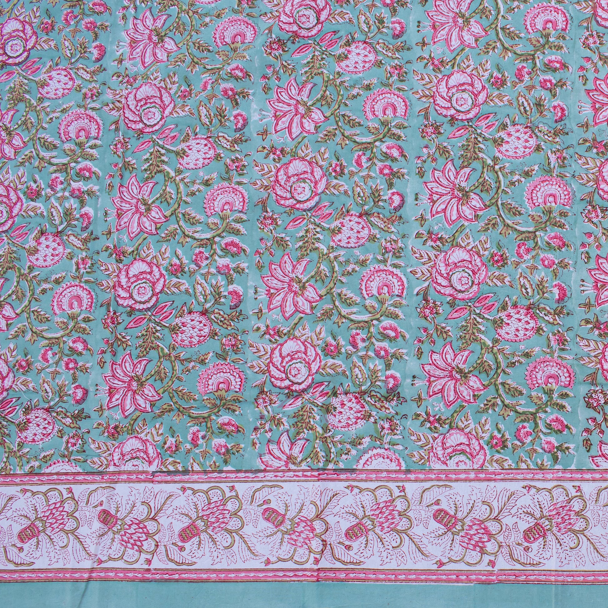 Floral Block Printed Cotton Tablecloth, Boho Table Linen, Handmade Home Decor - 90x108
