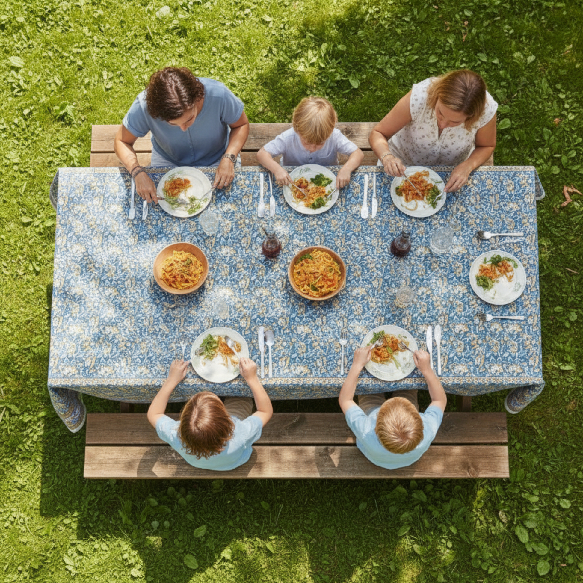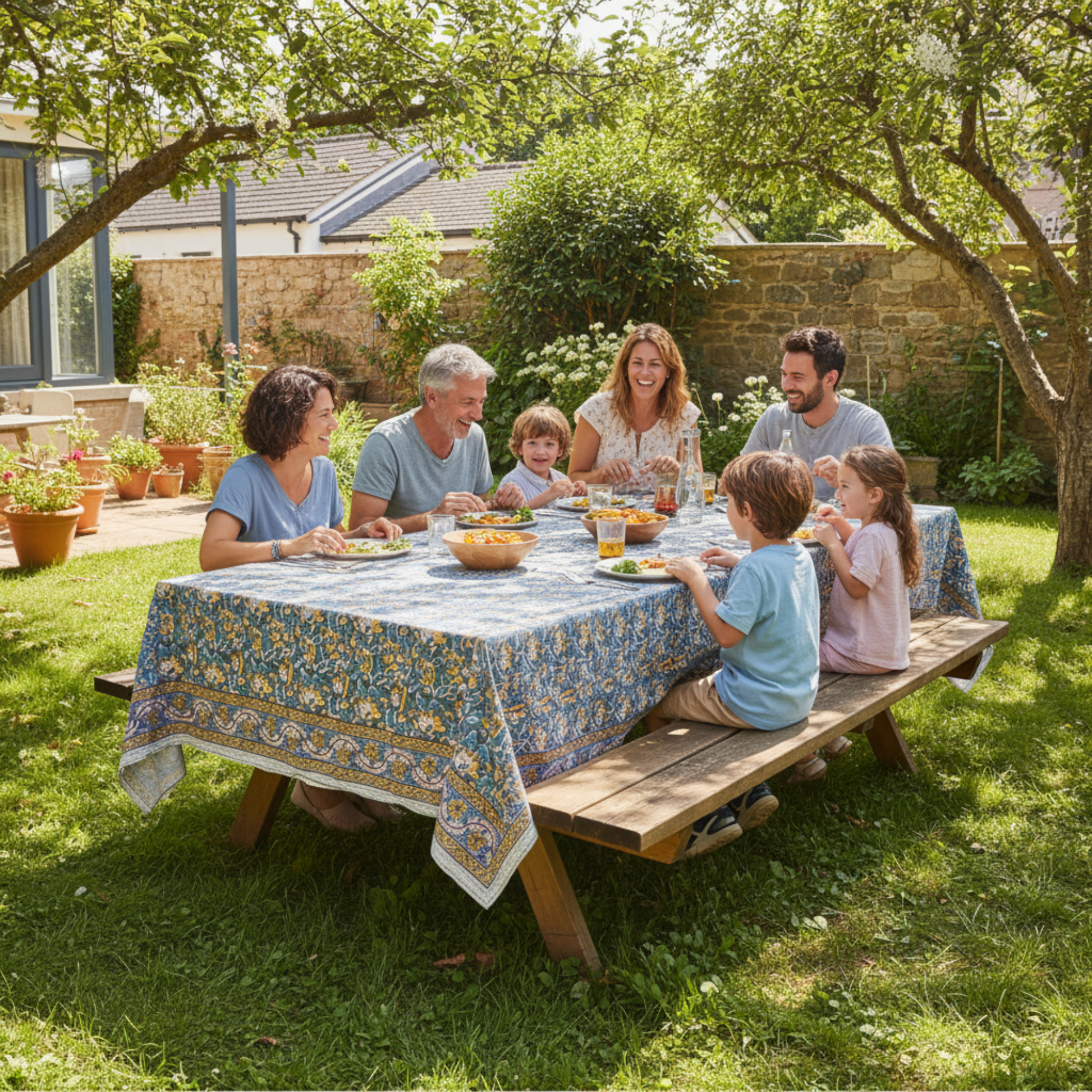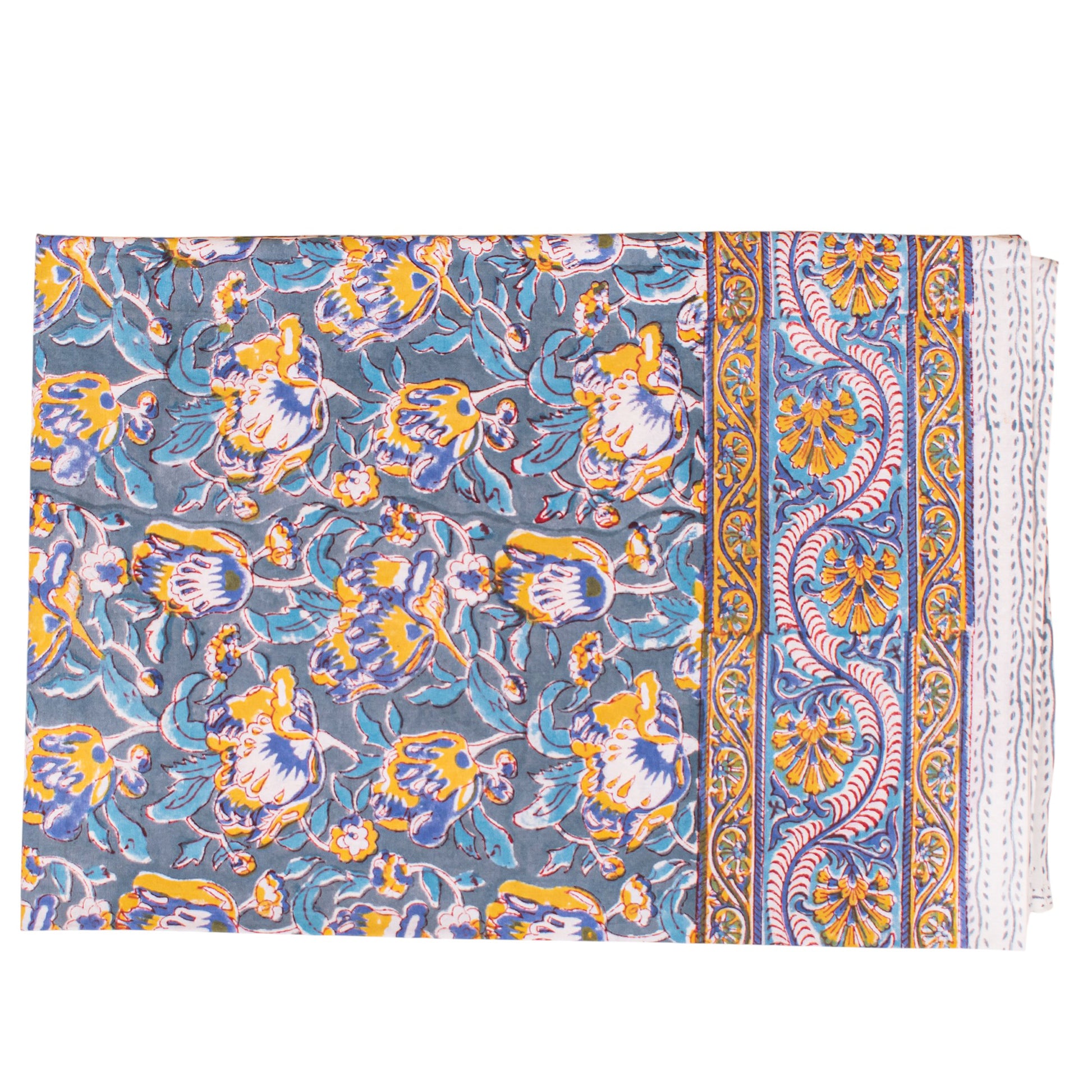 Brighten your table with this floral hand block print tablecloth, made from breathable cotton fabric. Its colorful boho-inspired design brings life to casual breakfasts, outdoor picnics, or festive dinners. Handcrafted using traditional printing techniques, this table cover adds artistic flair to your kitchen or dining area.