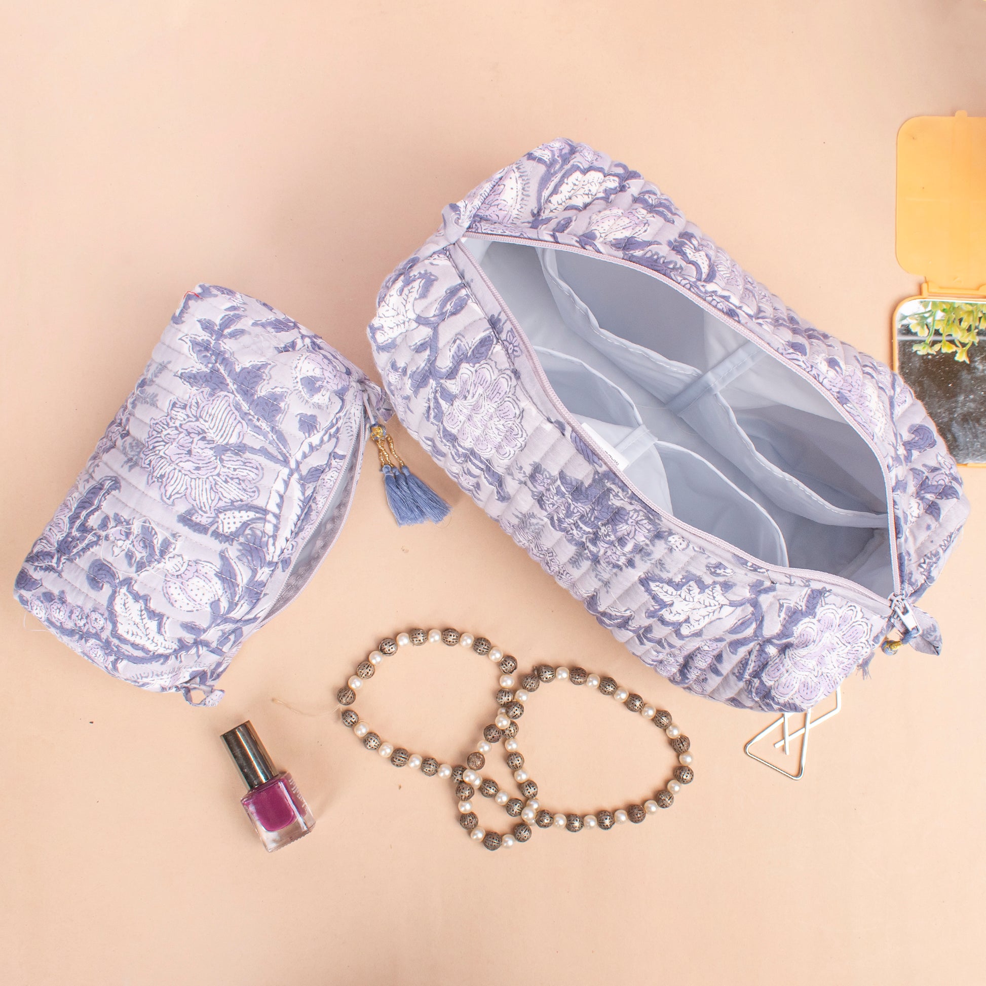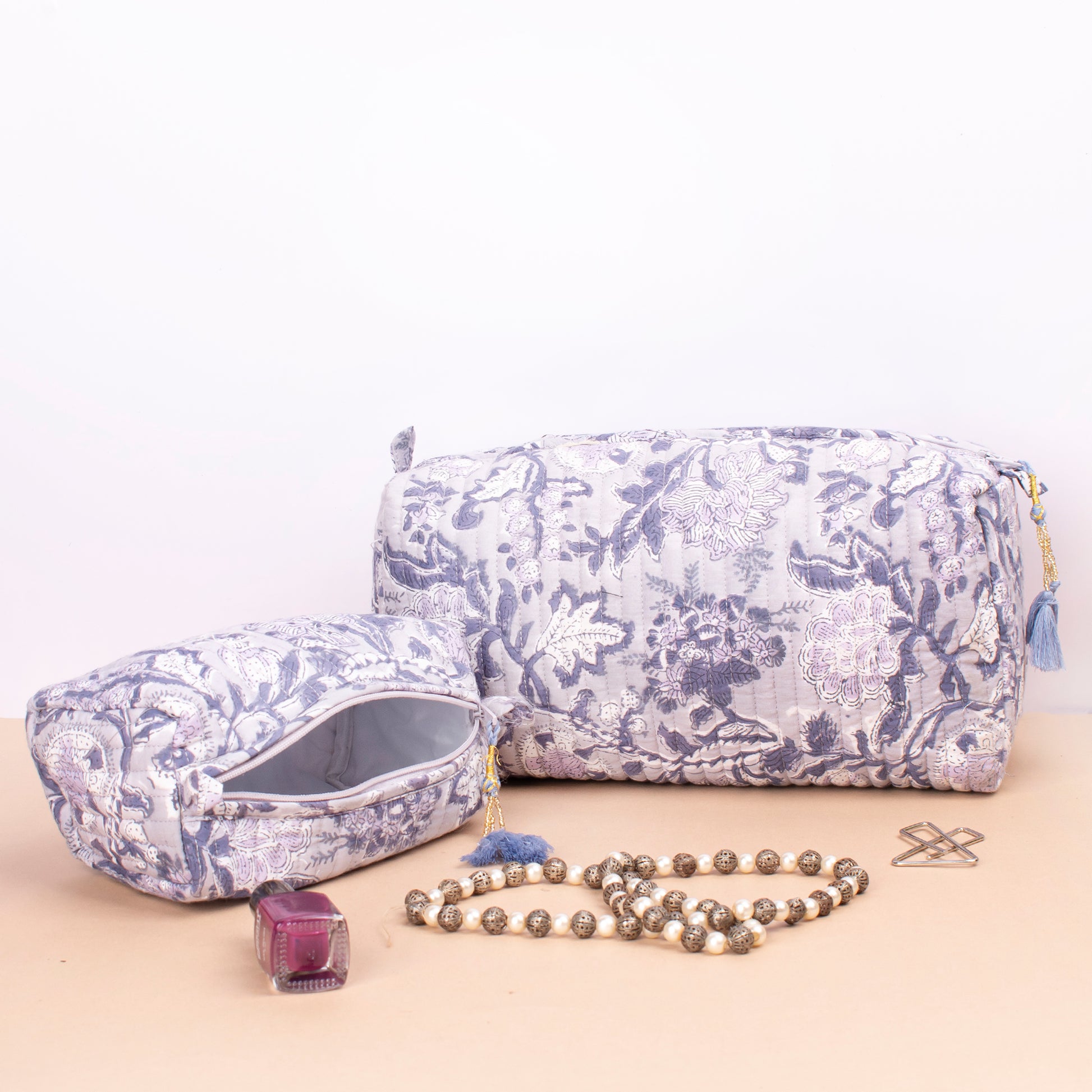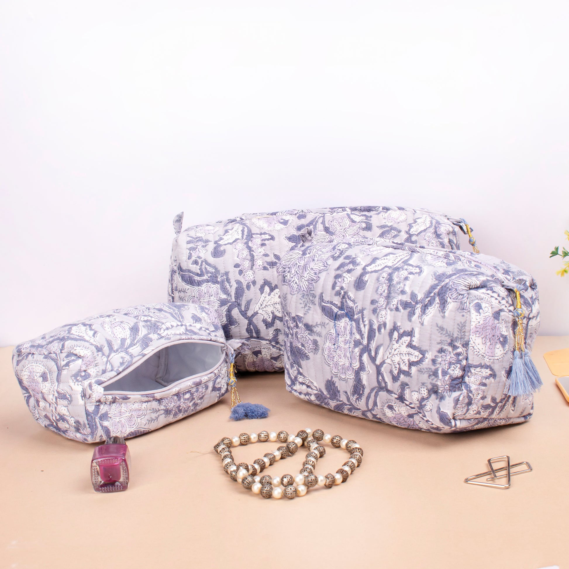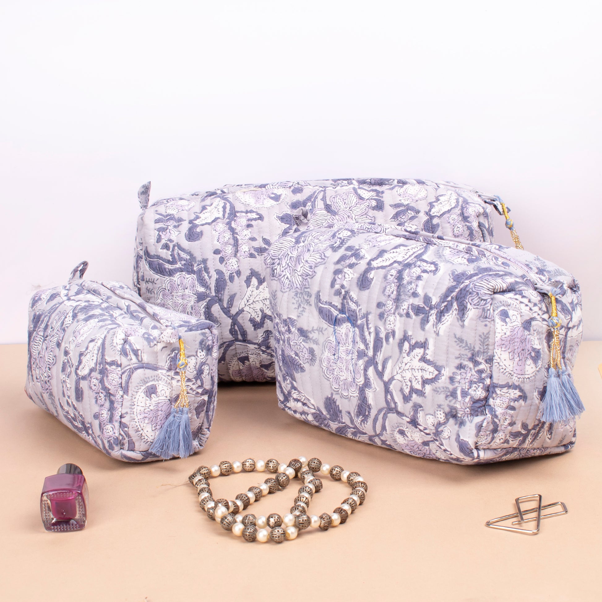 Hand Block Print Toiletry Bag, Cotton Toiletry Bag, Small Wash Bag For Women, Small Wash Bag For Women, Travel Makeup Pouch - Set of 3