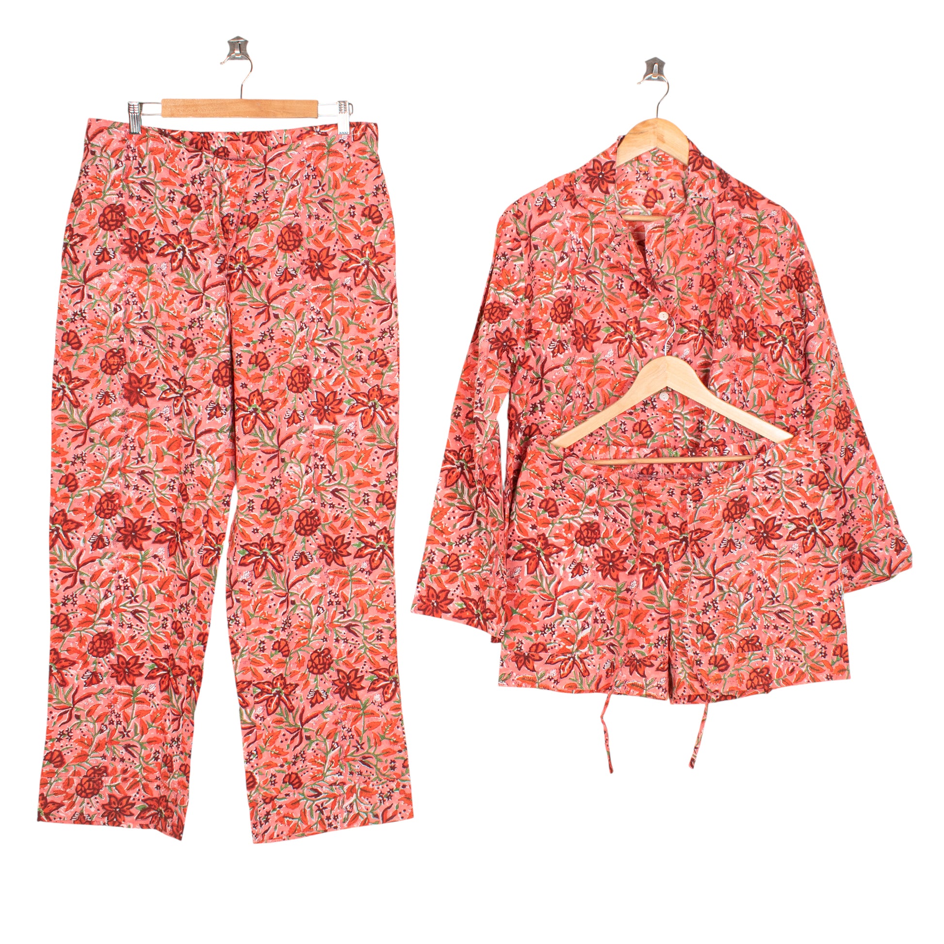 Hand Block Printed Cotton Pajama Set for Women – Ultra-Soft, Skin-Friendly Nightwear | Relaxed Fit Sleepwear for All-Season Comfort