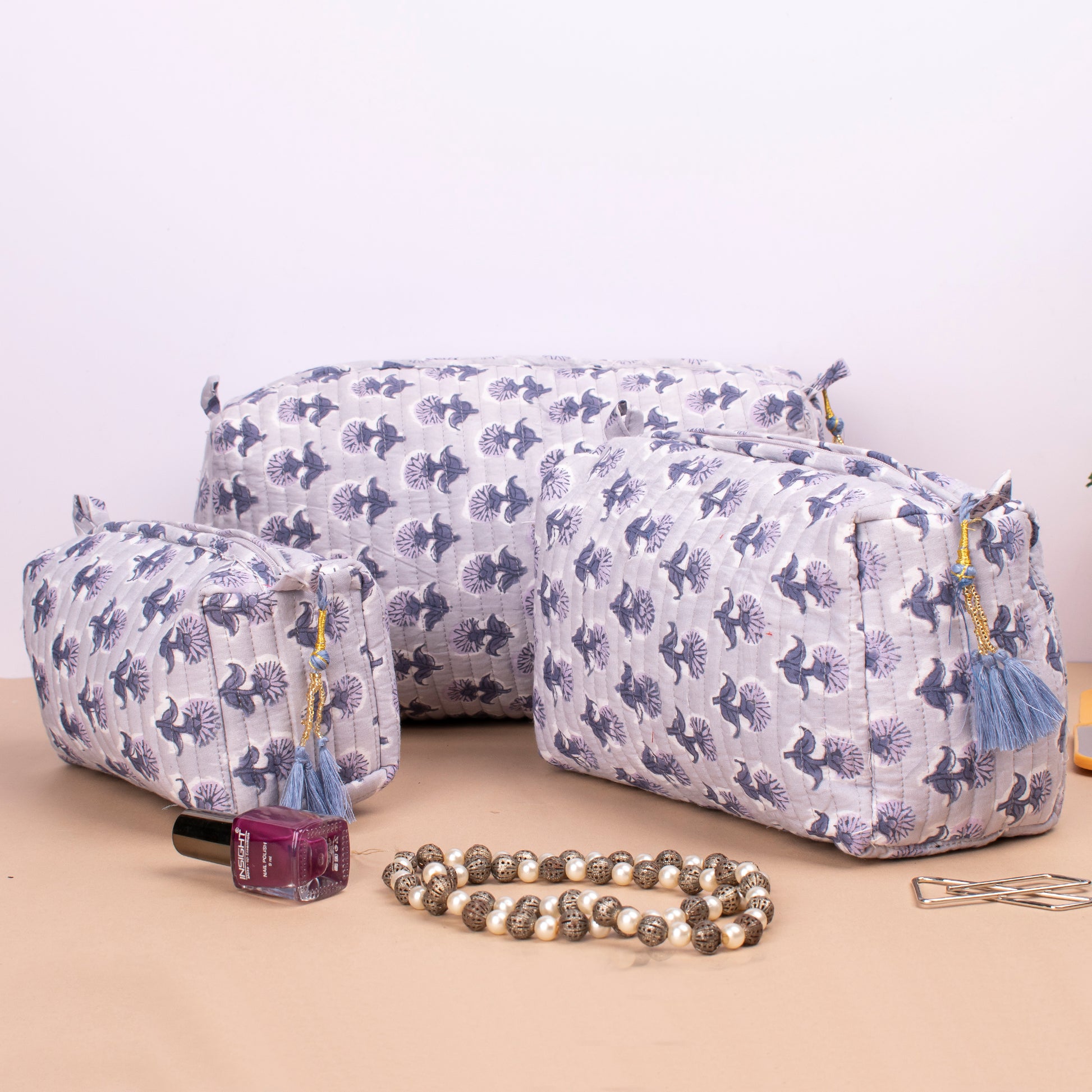 Hand Block Printed Makeup Pouch, Reusable Bag, Washable & Waterproof, Mini Makeup Organizer, Small Wash Bag For Women - Set of 3