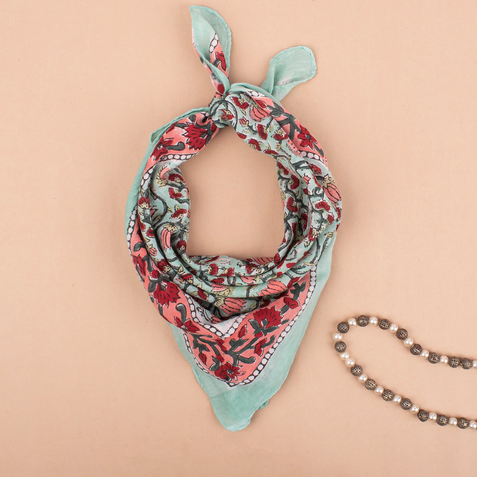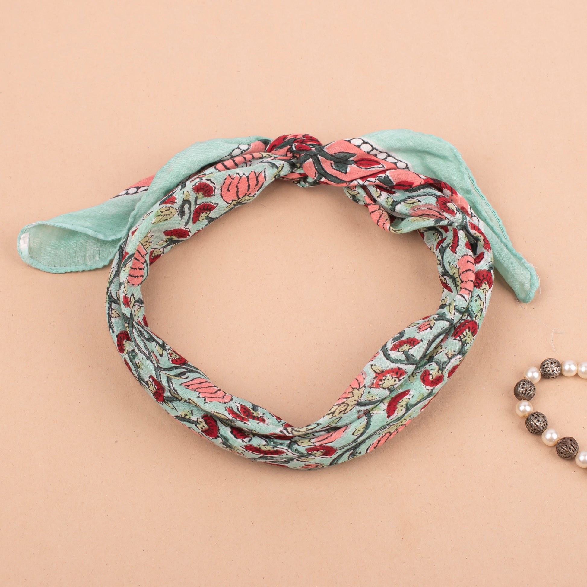 Handblock Printed Cotton Bandanas For Summer, Lightweight Hair Or Face Wrap, Eco Boho Scarf For Travel, Boho Headband