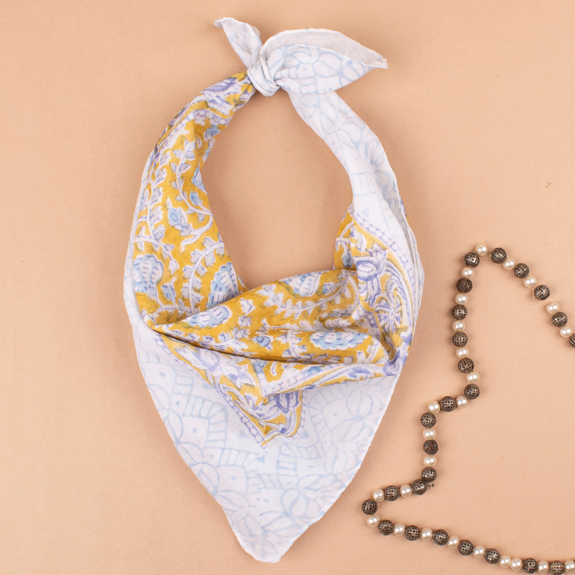 Lightweight Handprinted Cotton Bandana, Boho Head Wraps For All Genders, Stylish Unisex Cotton Bandanas, Eco Gift Wrap