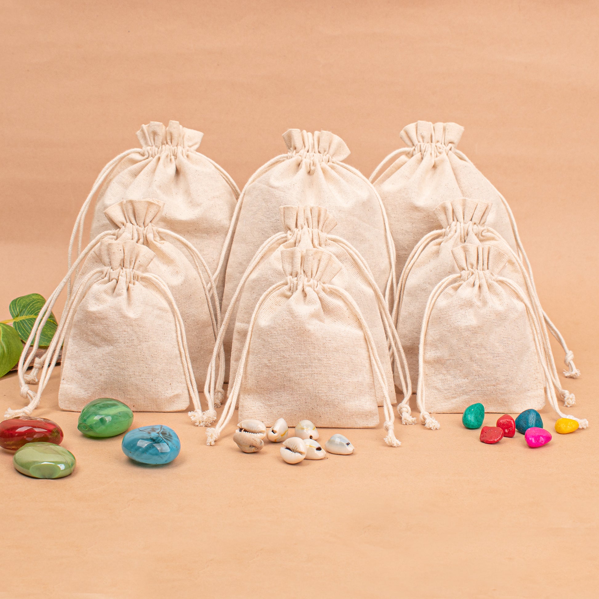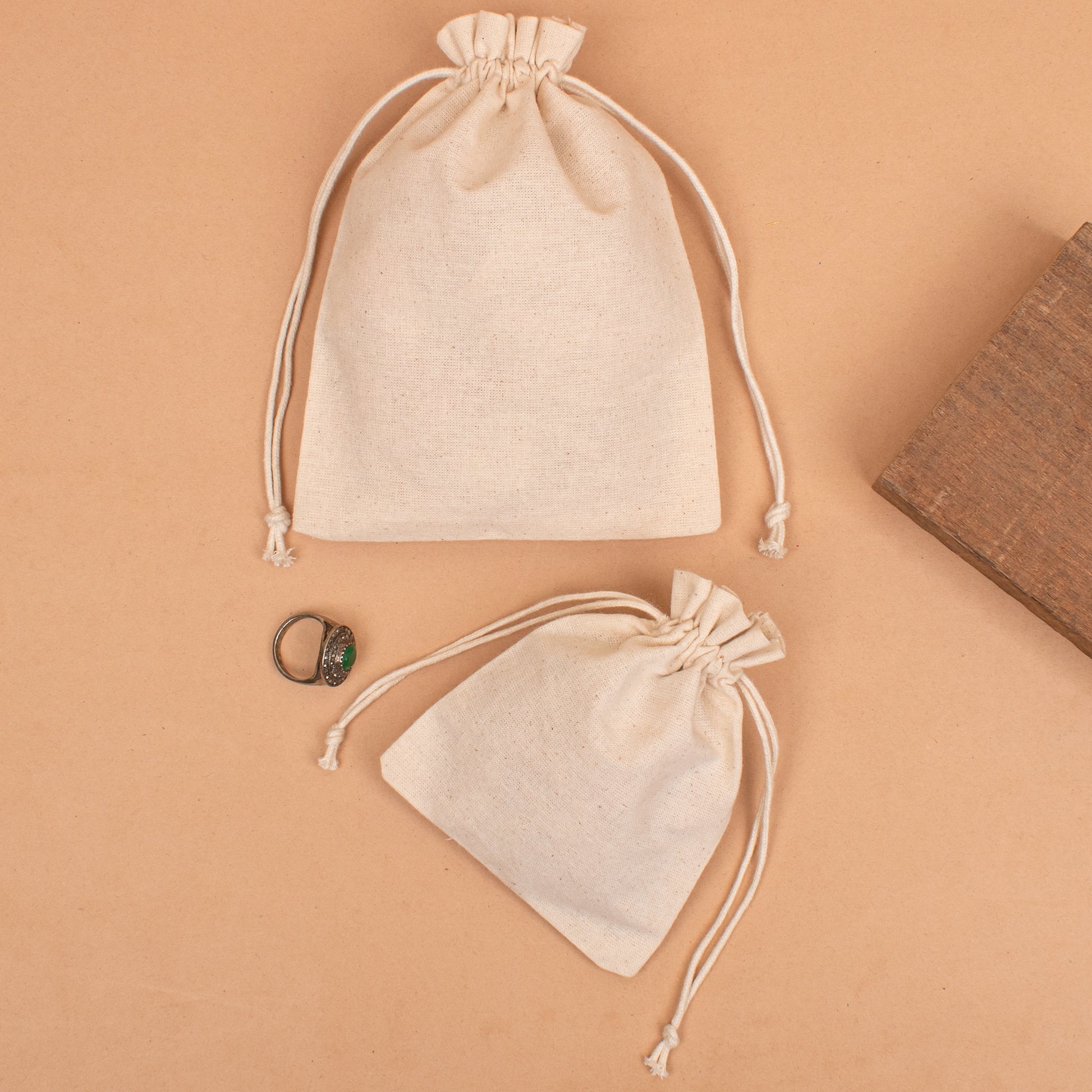 Pack of 50 Plain Drawstring Jewelry Bag come in a variety of colors and are made from natural cotton material. These Cotton Pouches are durable which means you can use them for a long time. Not only this, they are also reusable so there is no need to throw them away after using them once. These Cotton Fabric Small Jewelry Bags are eco-friendly and reduce the harmful impact on the environment. You can use them in a variety of ways, like for brand promotion, storing jewelry, enhancing packaging.