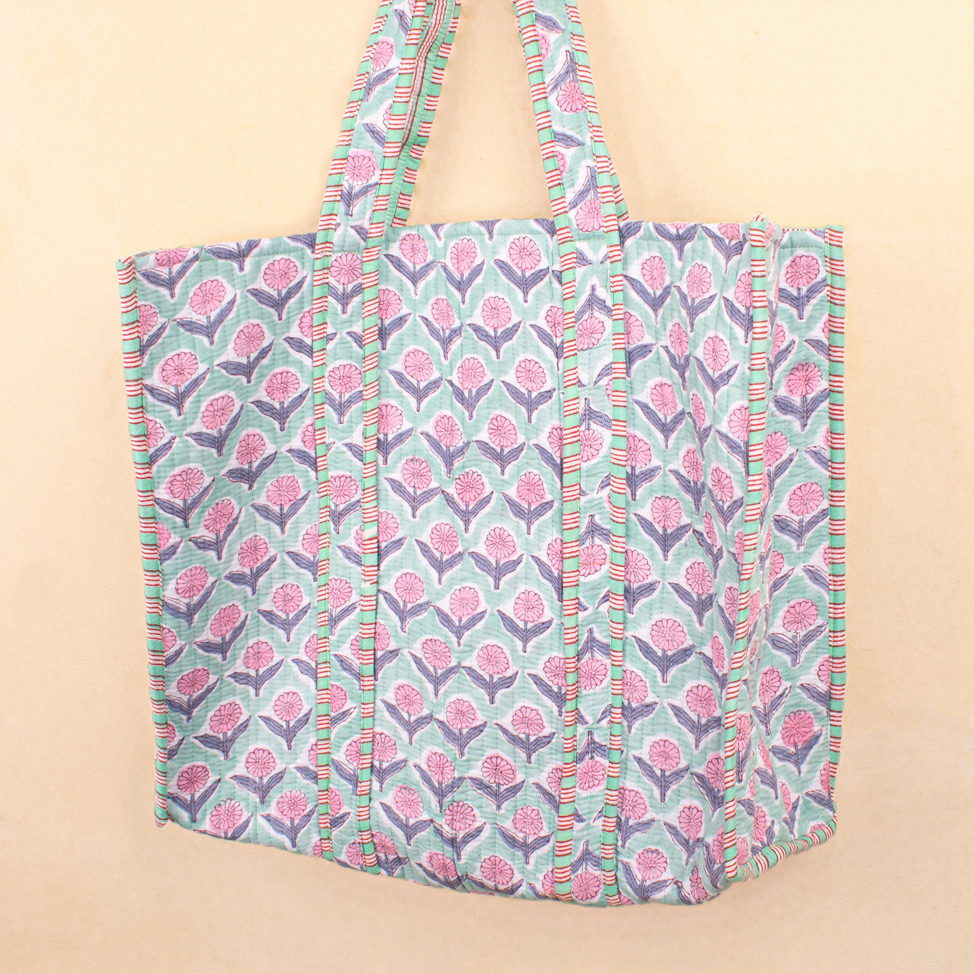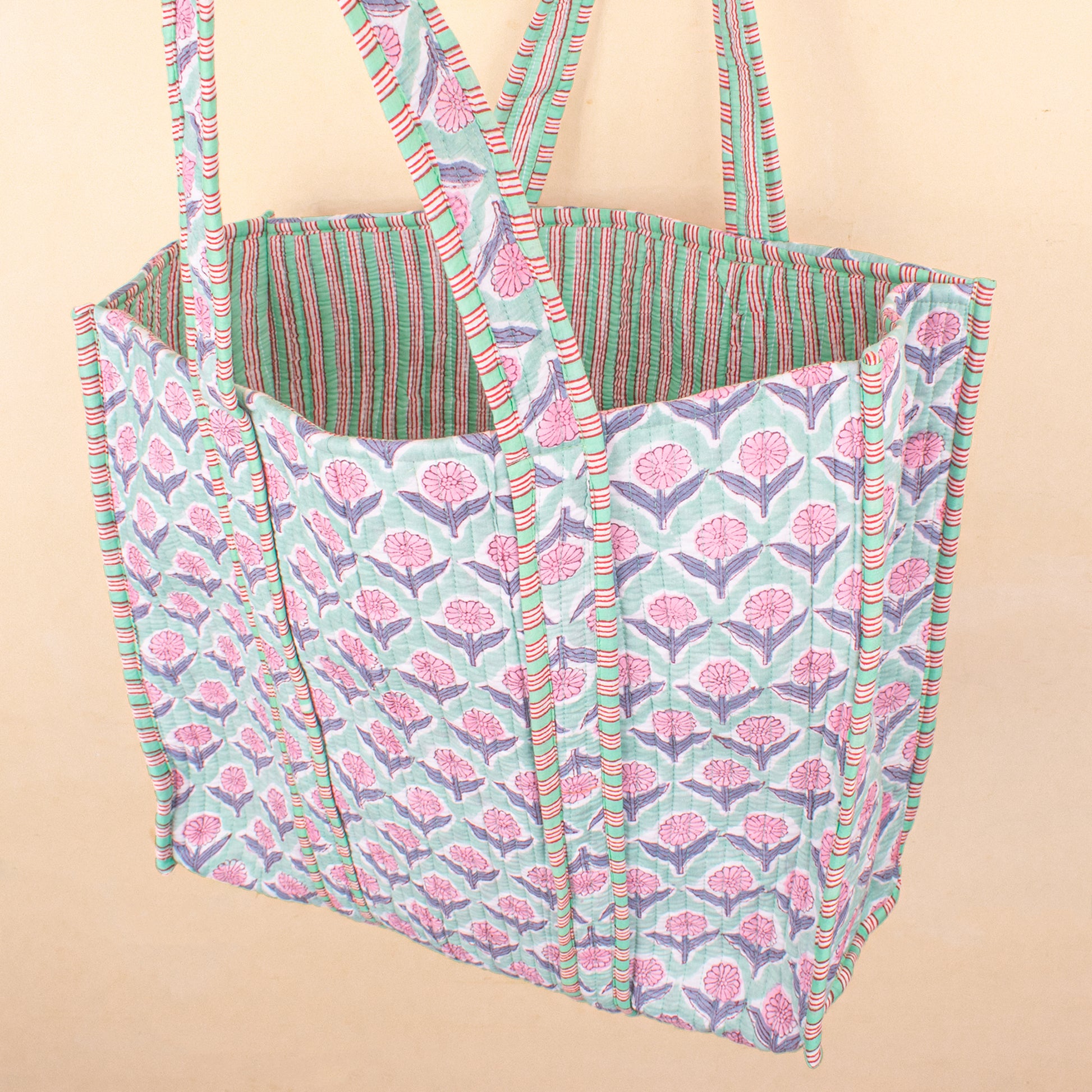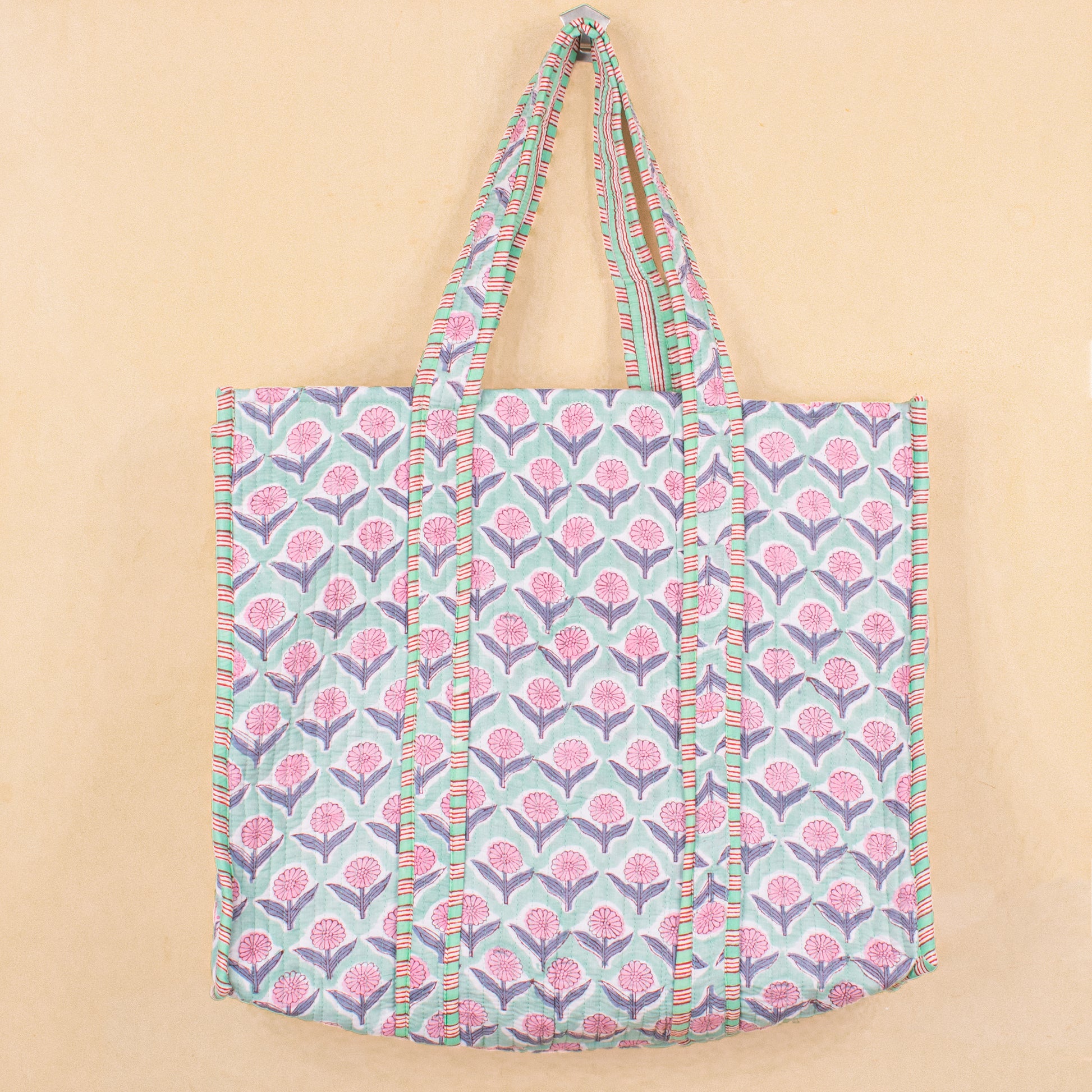 Quilted Tote Bag, Custom Market Bag. Cotton Shoulder Bag