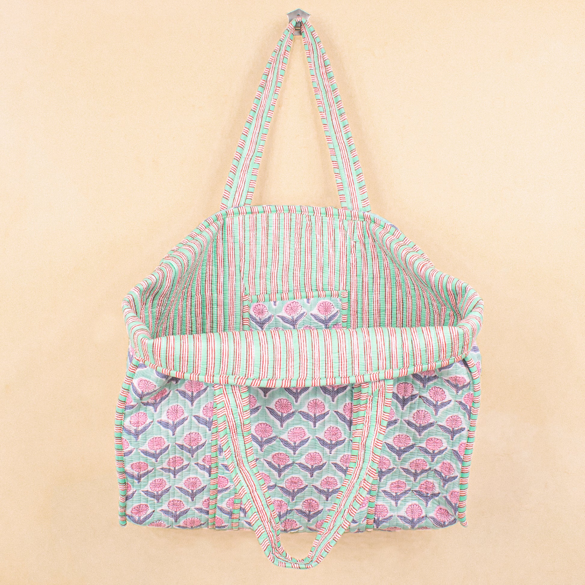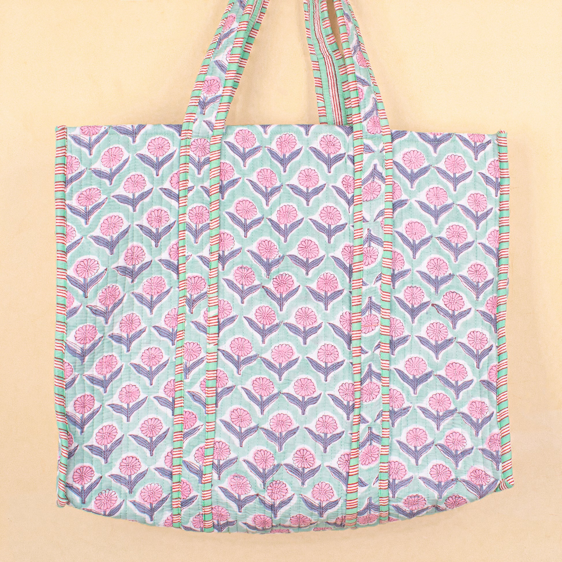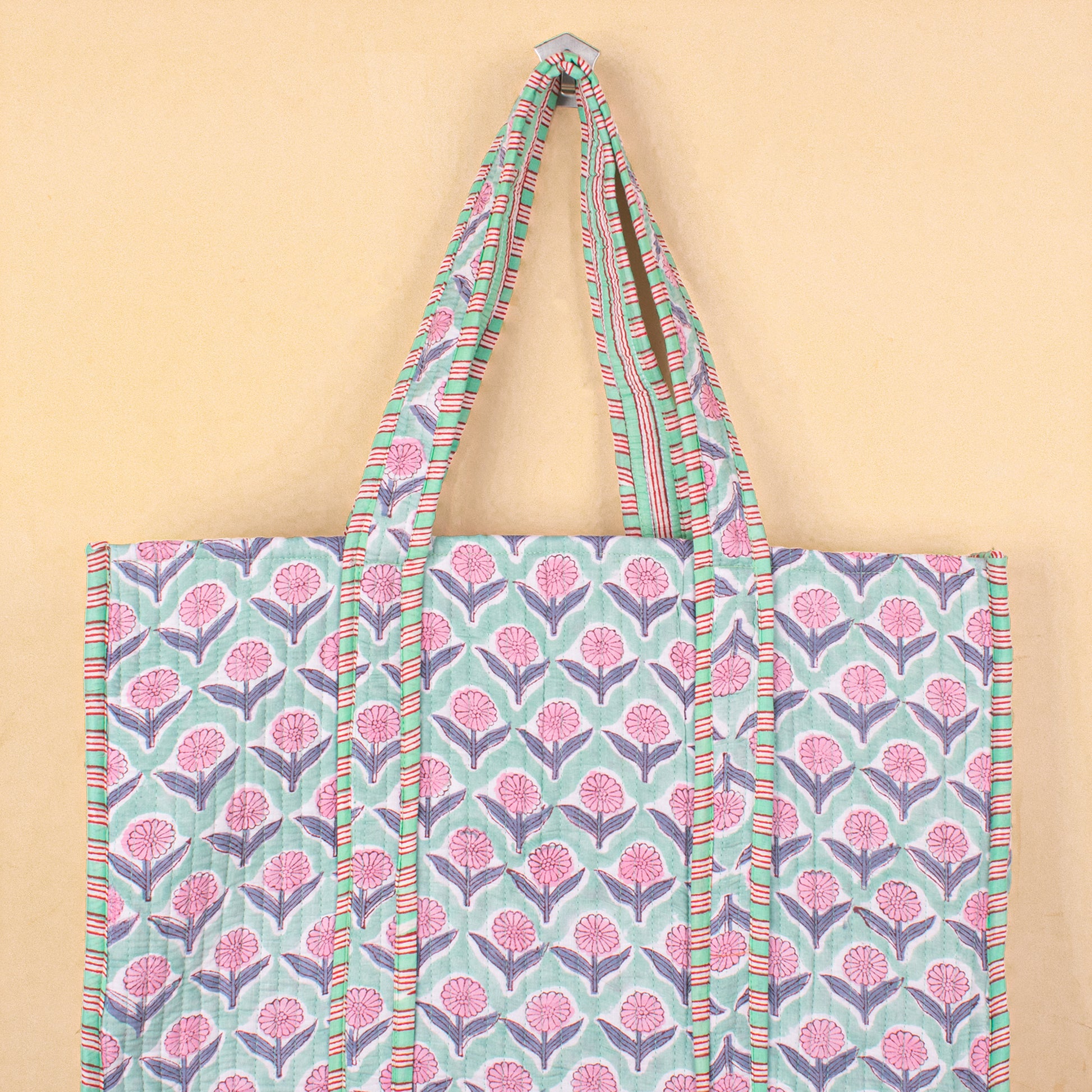 Quilted Tote Bag, Custom Market Bag. Cotton Shoulder Bag