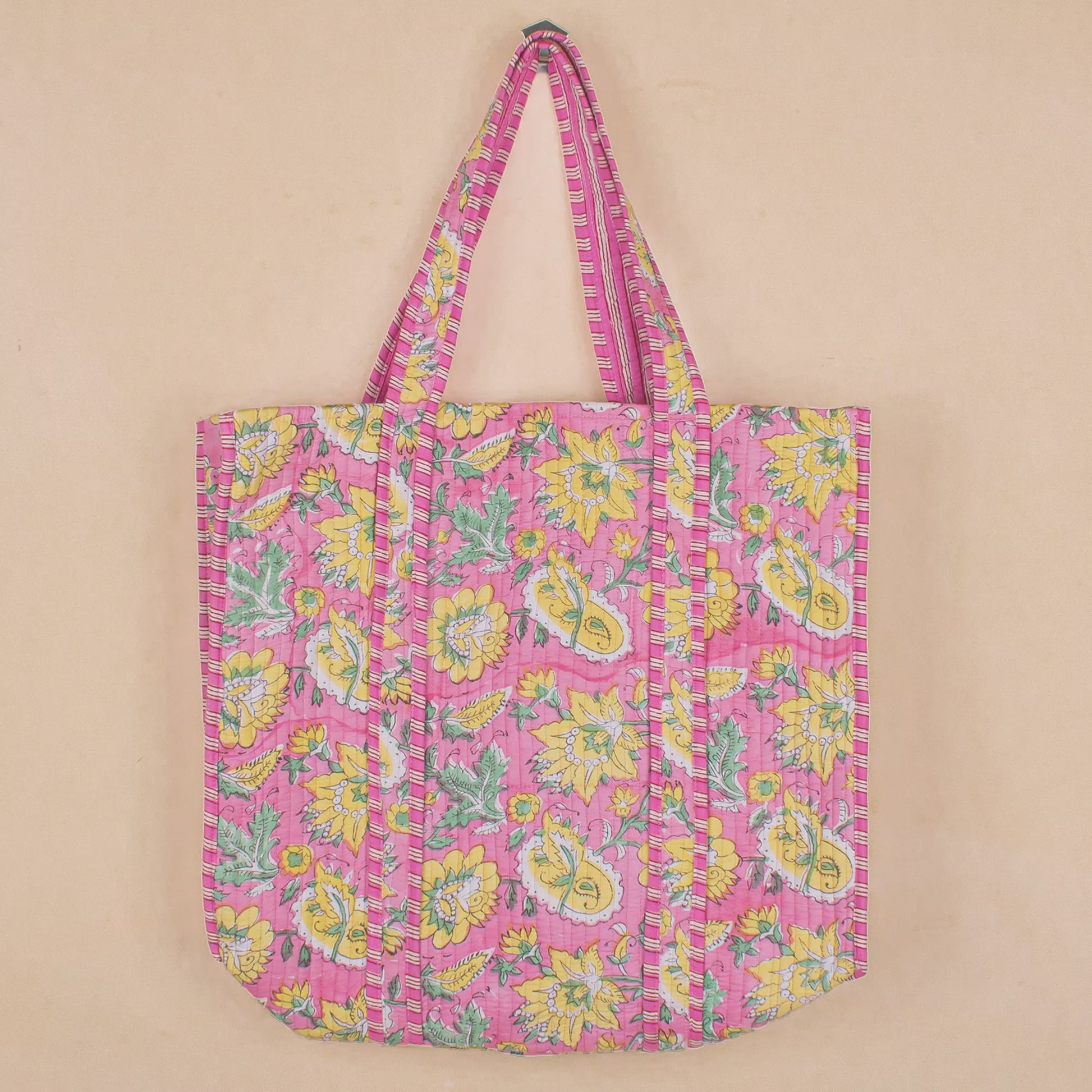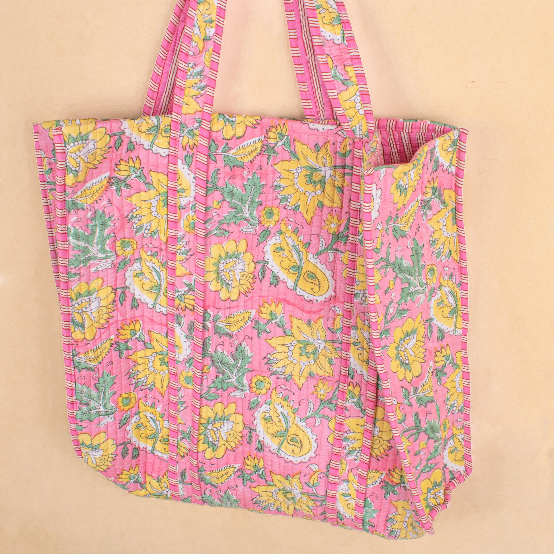 Quilted Tote Bag for Women, Handmade Cotton Shoulder Bag, Reusable Shopping Bag