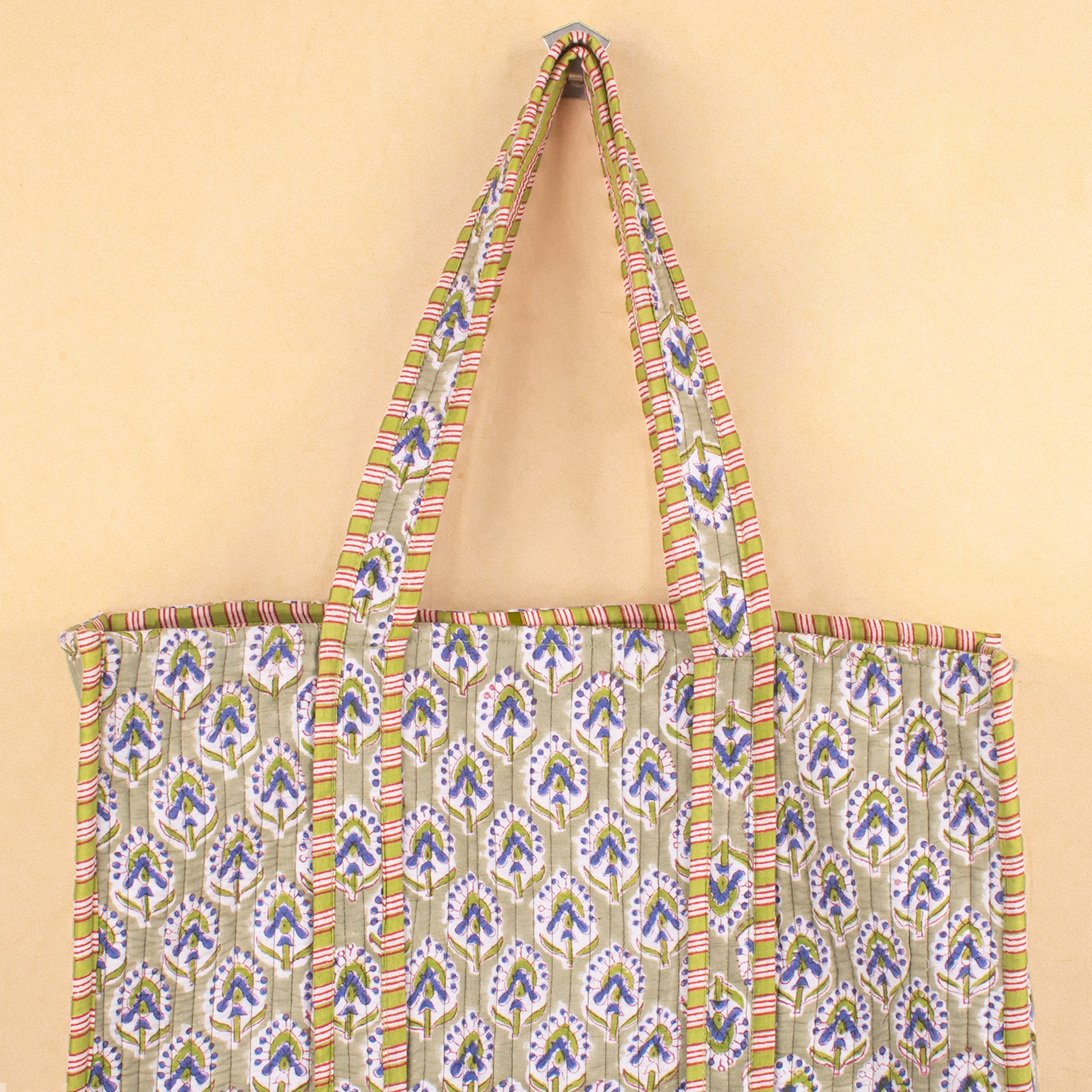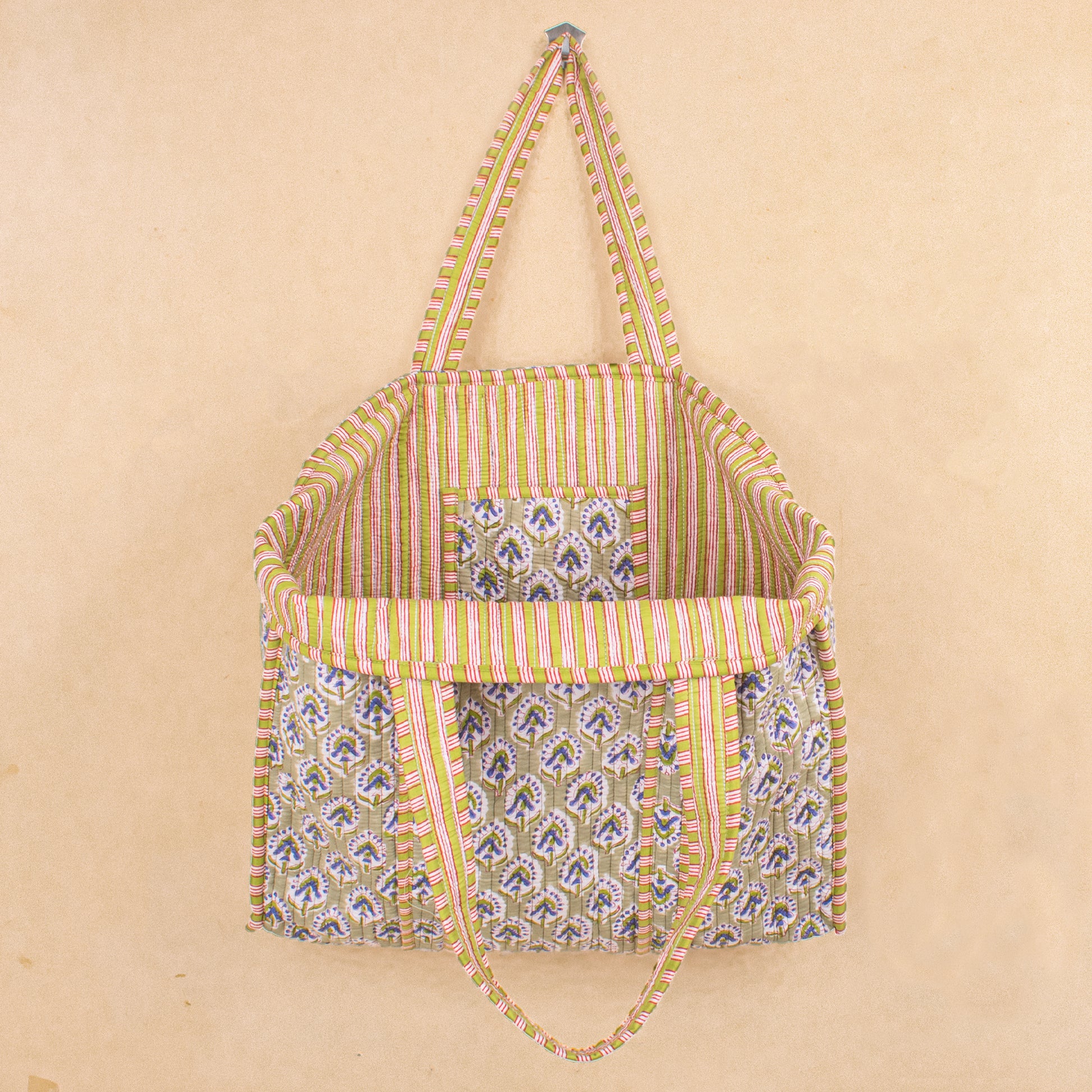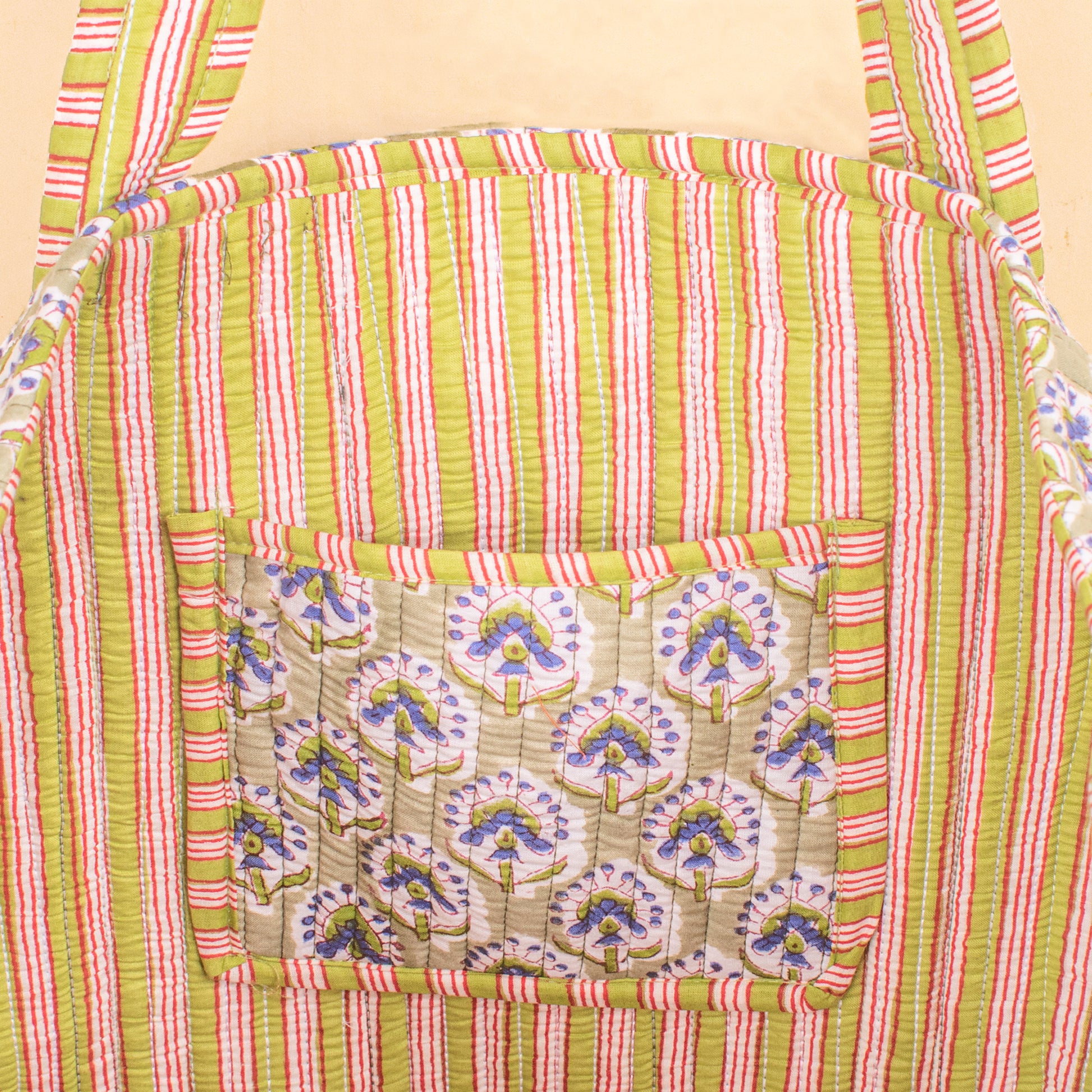 Quilted Tote Bag with Pockets, Lightweight Cotton Handbag, School & Work Bag