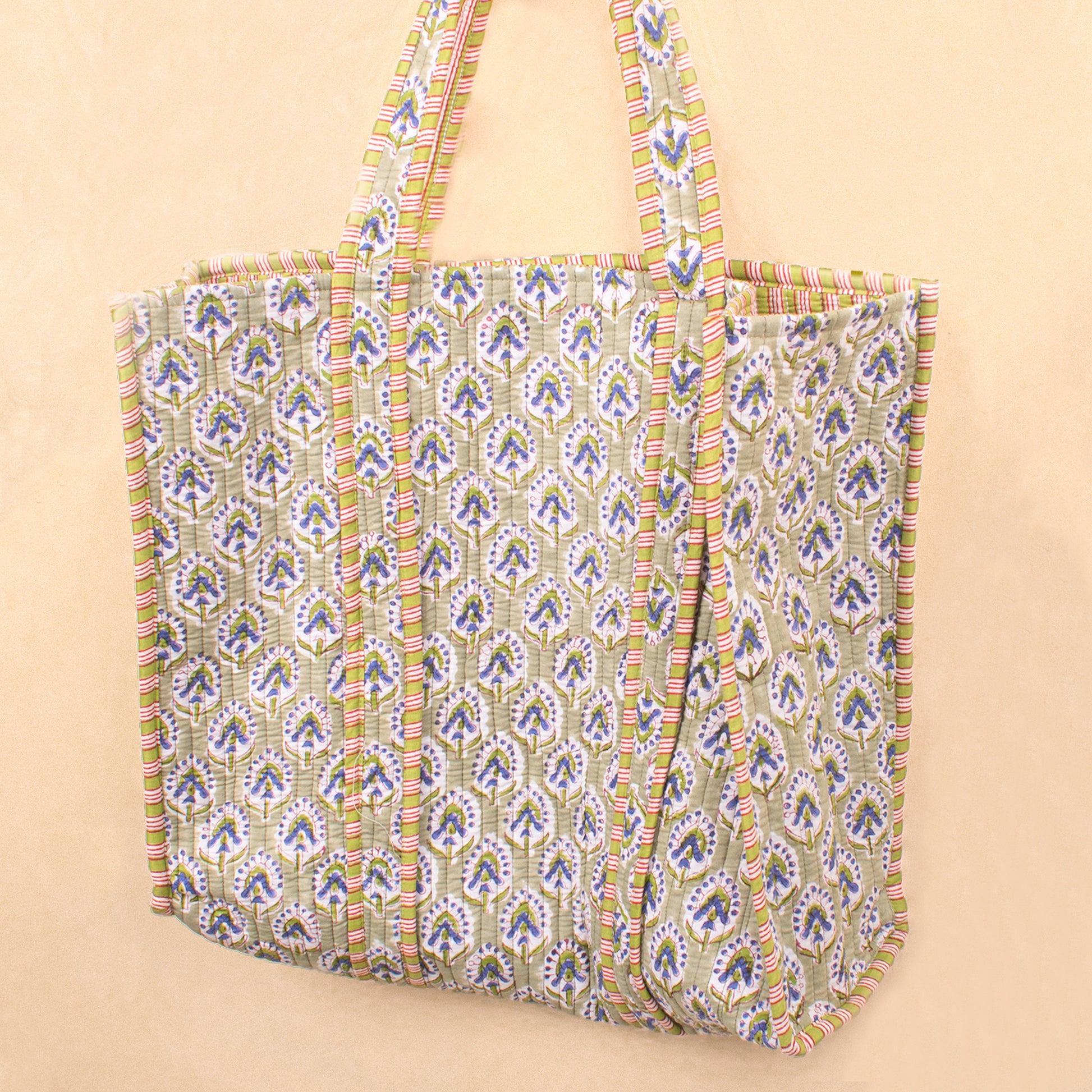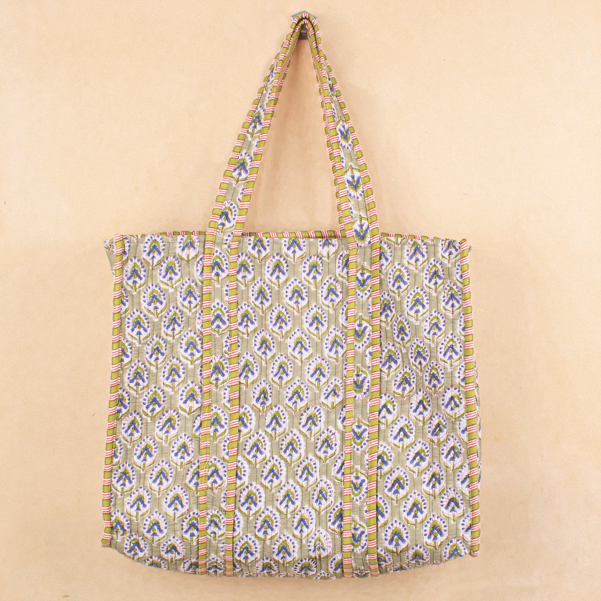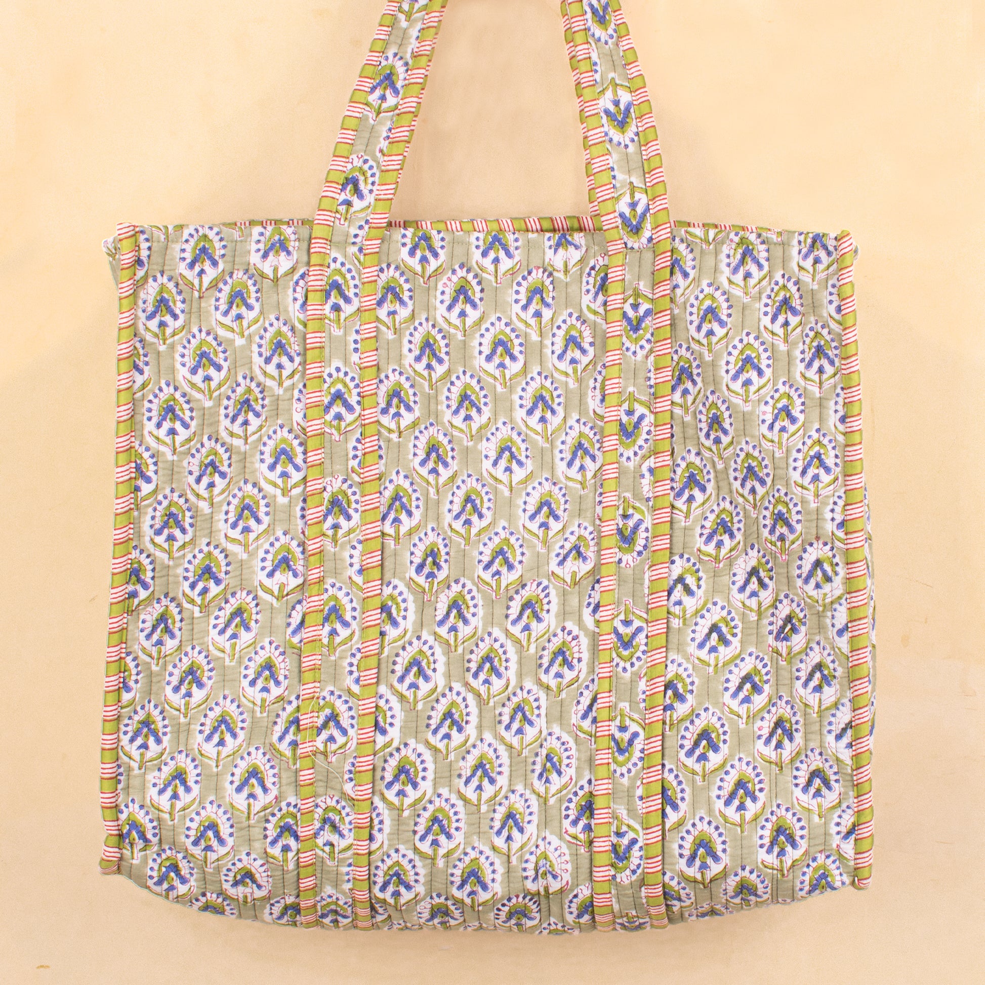 Quilted Tote Bag with Pockets, Lightweight Cotton Handbag, School & Work Bag