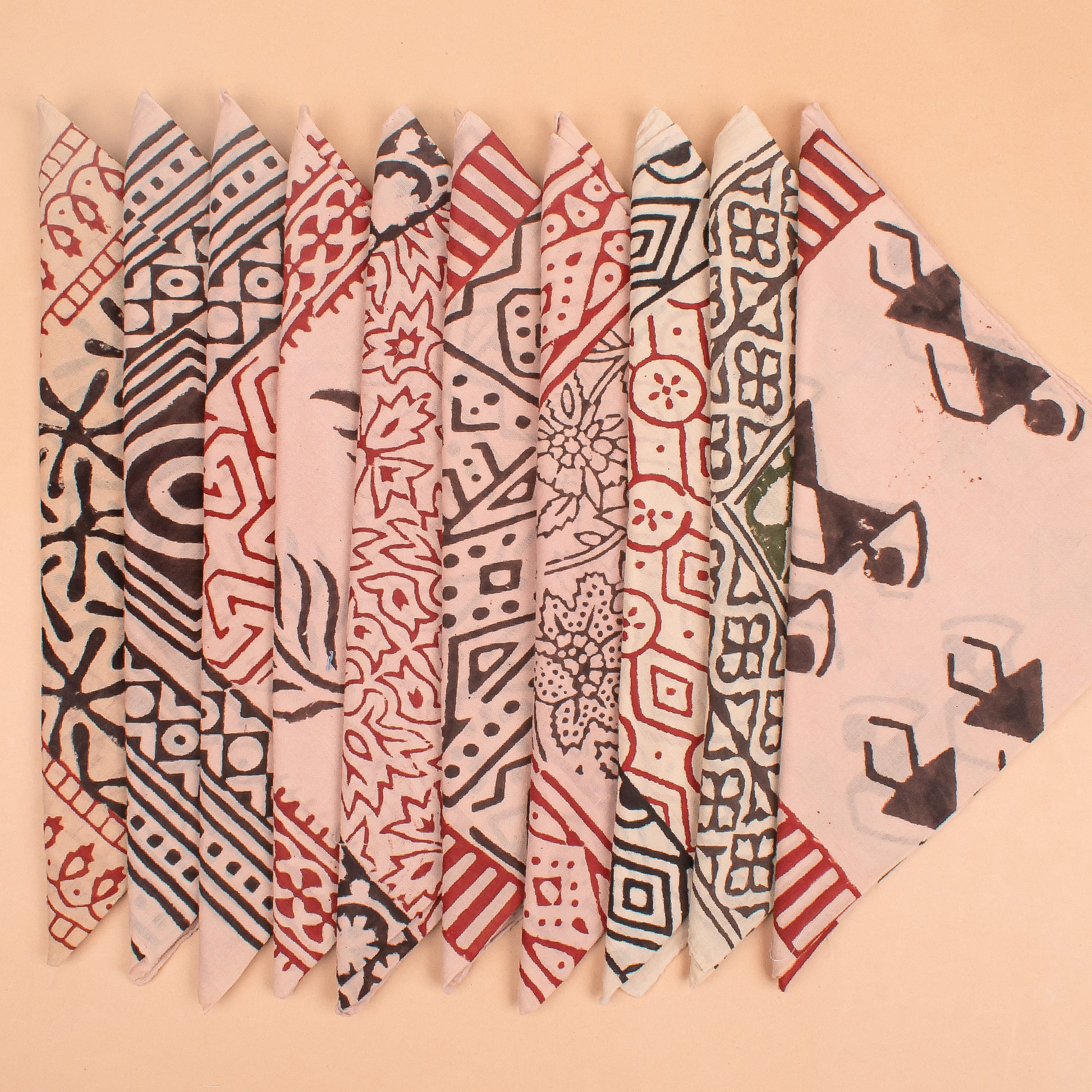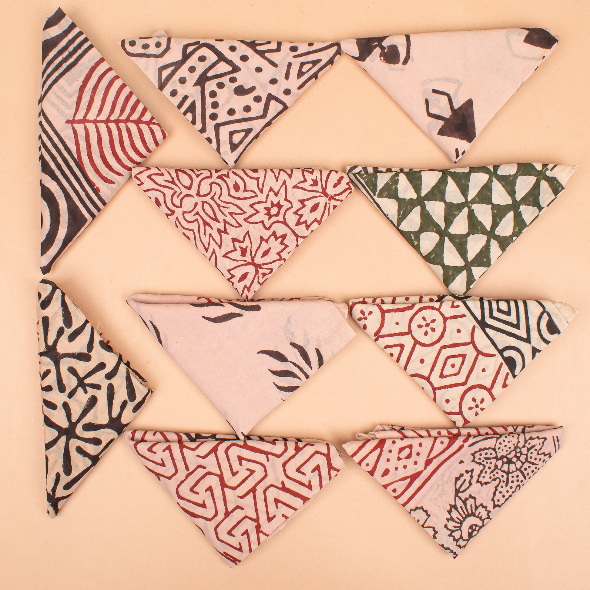 Set of 10 - Stylish Boho Cotton Bandana, Handmade Block Print Square Scarf, Organic Head Wrap, Pet Accessory Gift, Biker Fashion Wrap, Eco-Friendly Unisex Neck Scarf