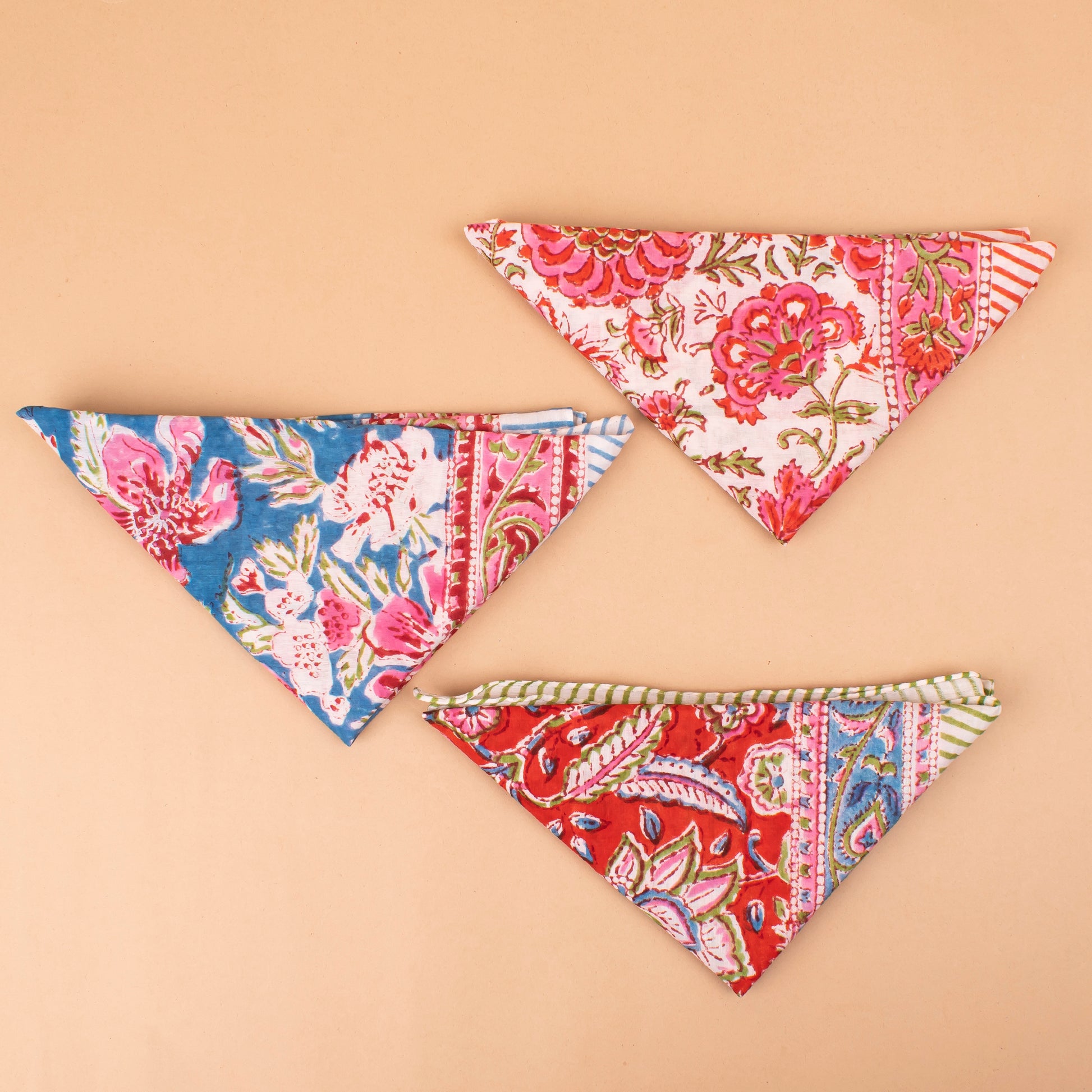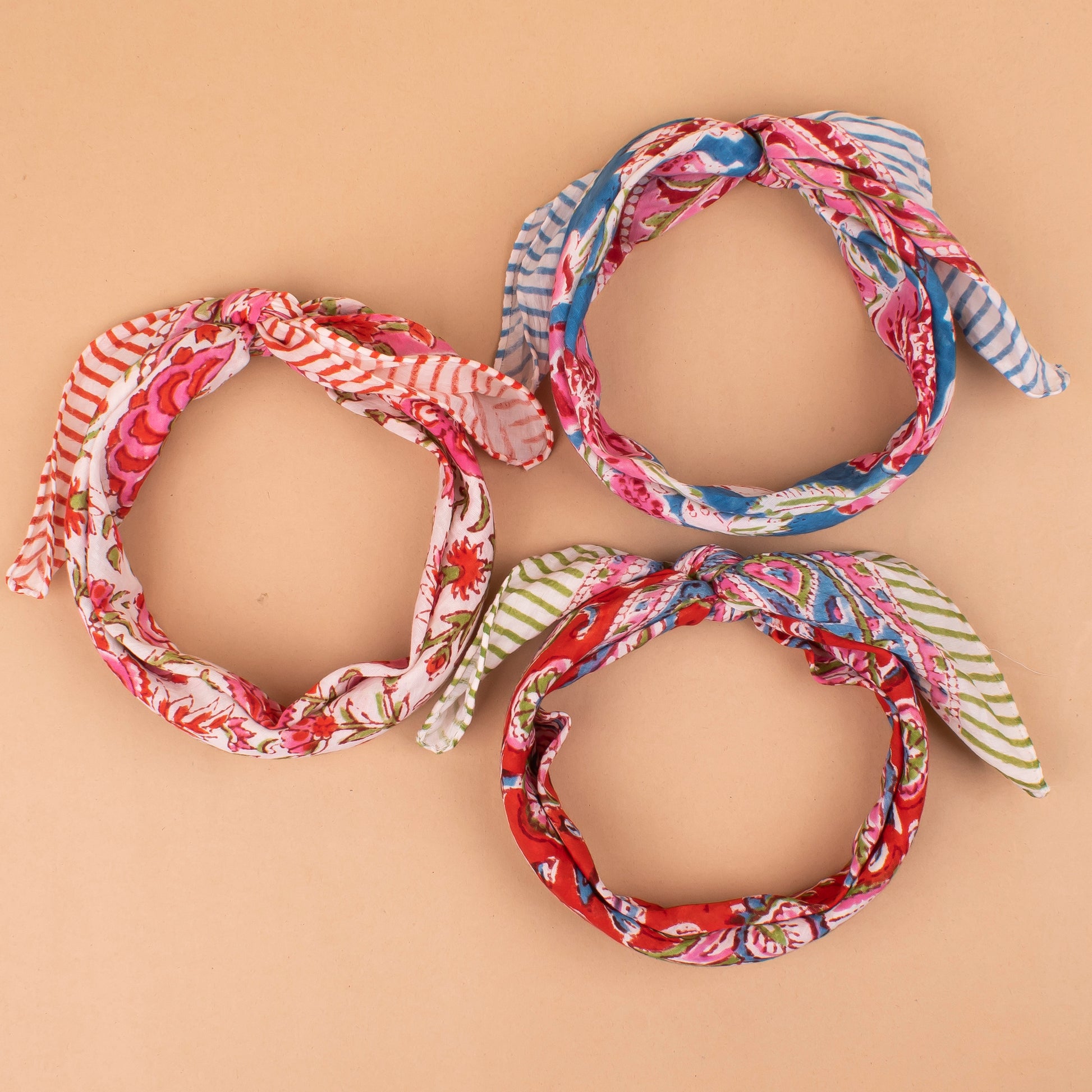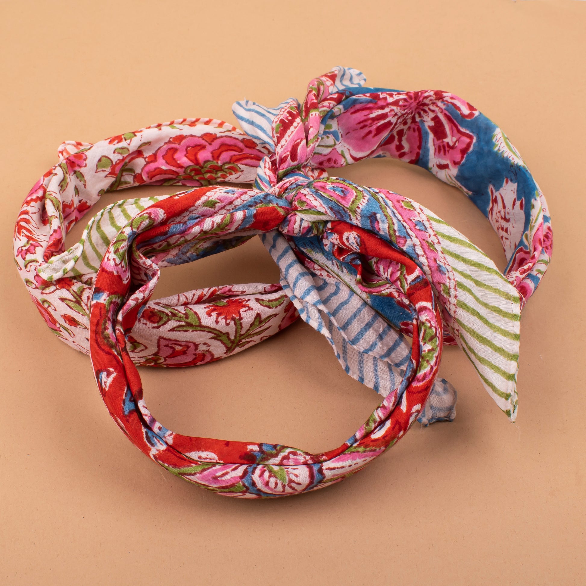 Set of 3 - Versatile Boho Cotton Bandanas For Bikers, Stylish Neck & Face Wraps, Handmade Block Printed Headwraps For Outdoors