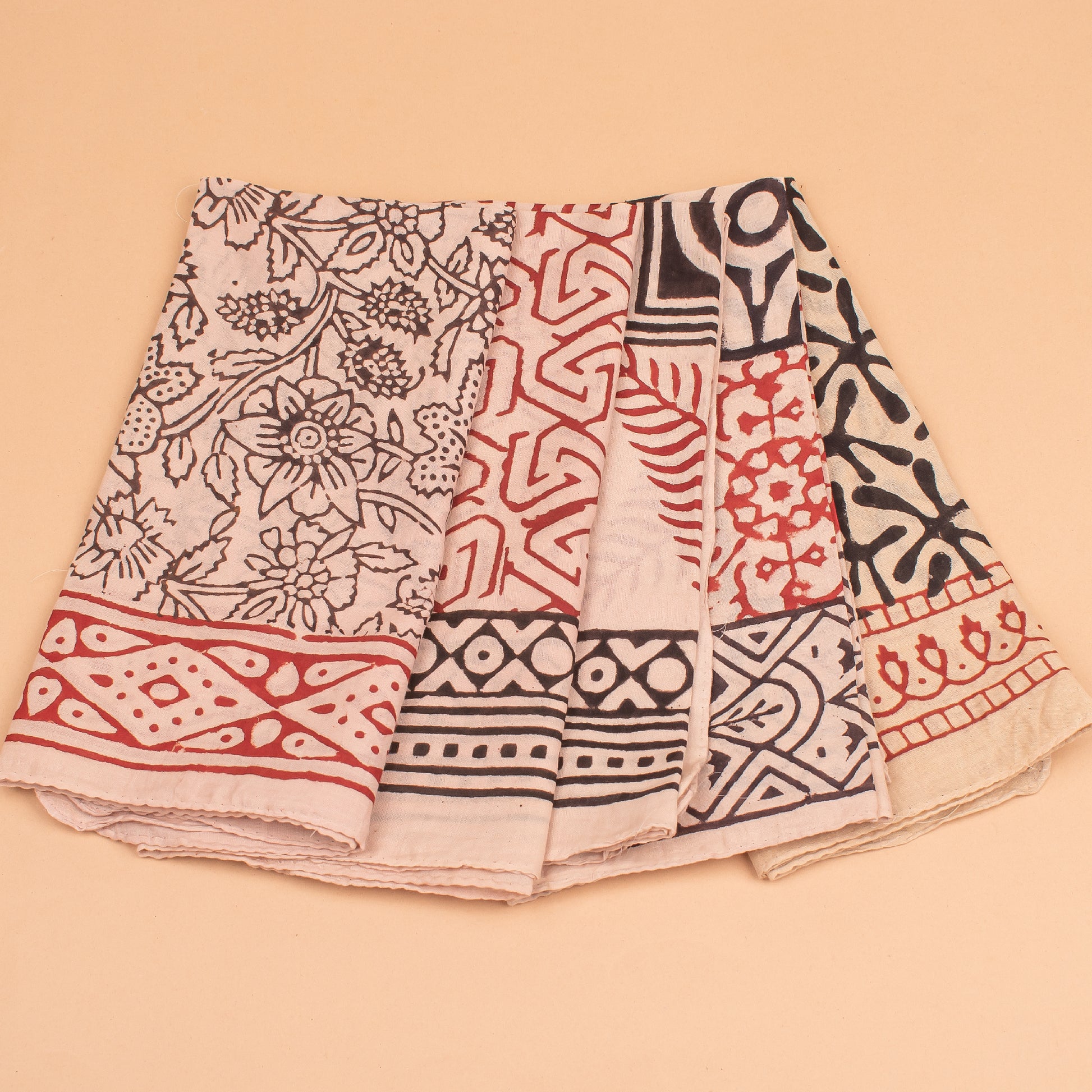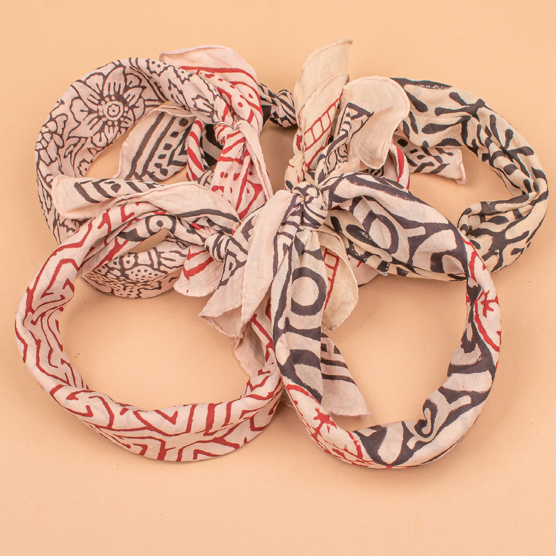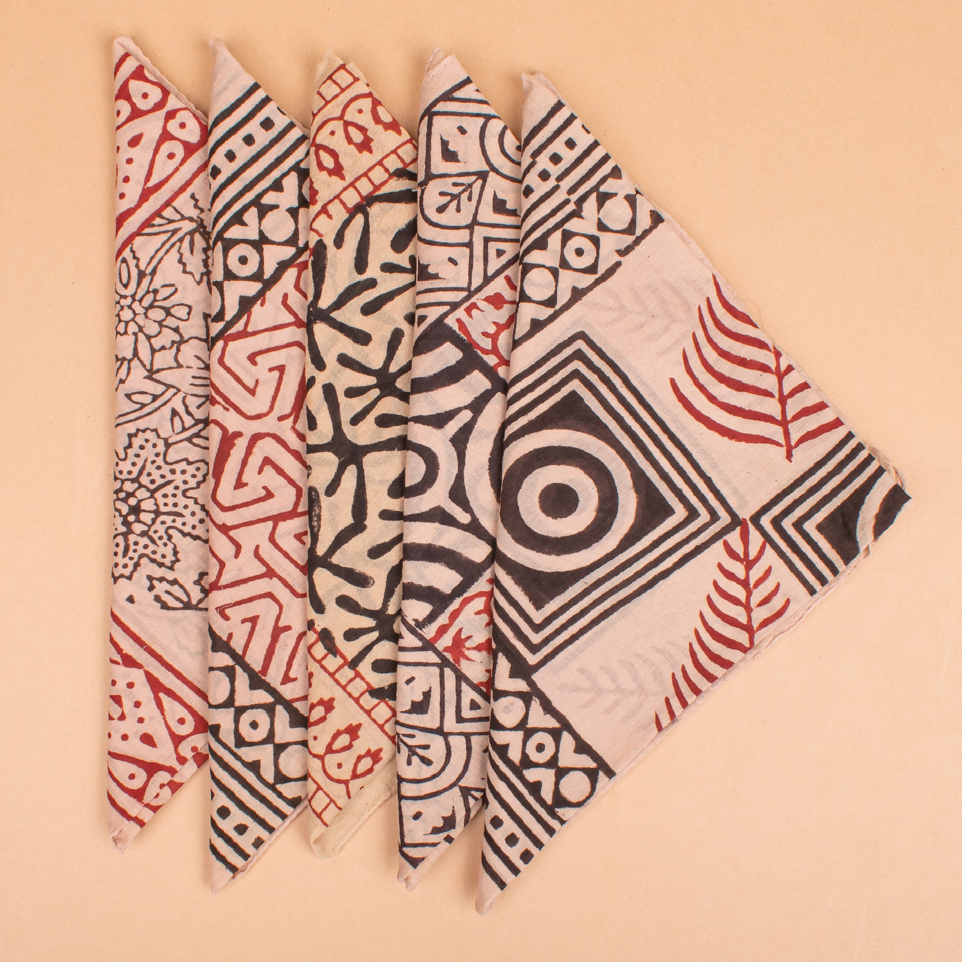 Set of 5 - Cotton Boho Bandana, Handmade Lightweight Scarf, Block Printed Paisley Hair Or Neck Wrap, Sustainable Unisex Accessory Fashion Gift