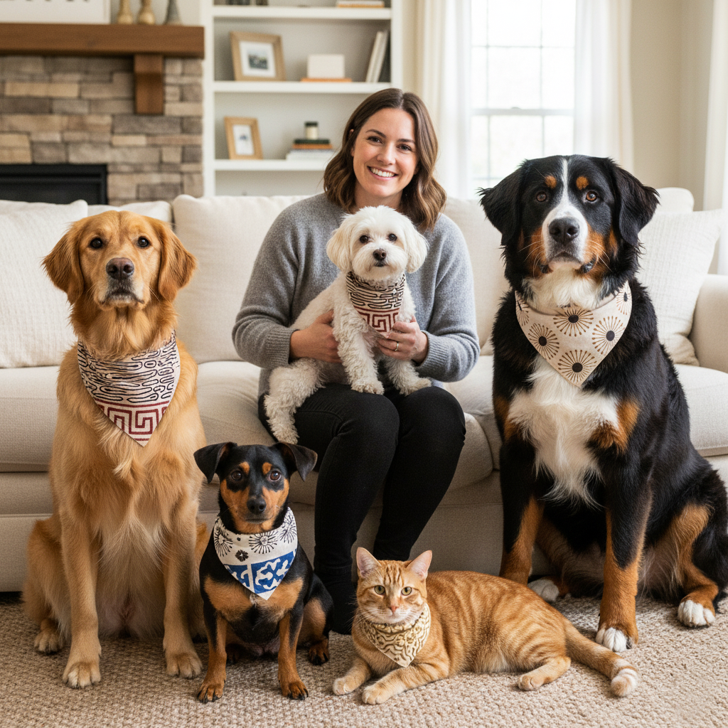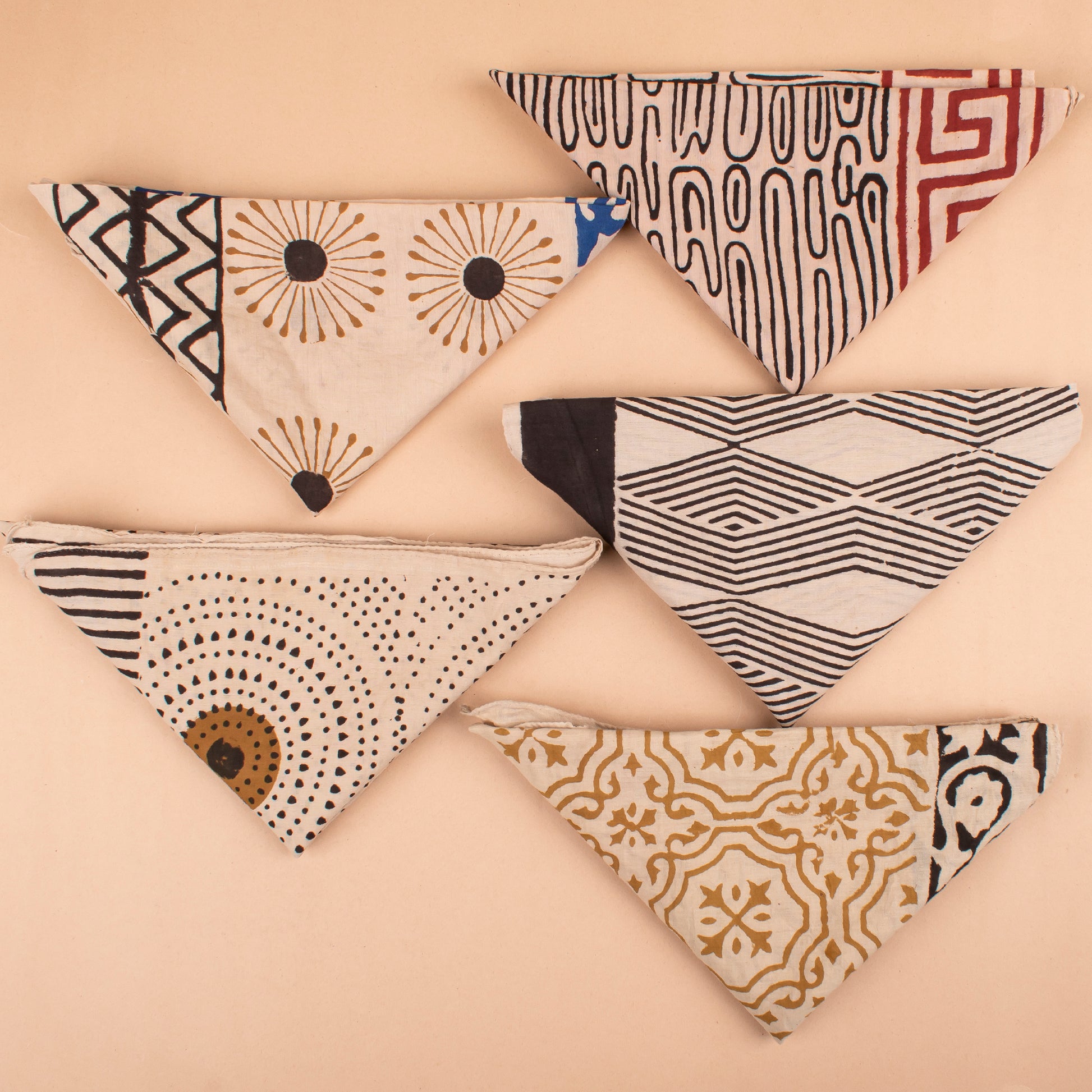 Set of 5 - Sustainable Cotton Dog Bandana, Stylish Pet Neck Wrap, Hand Block Printed Design