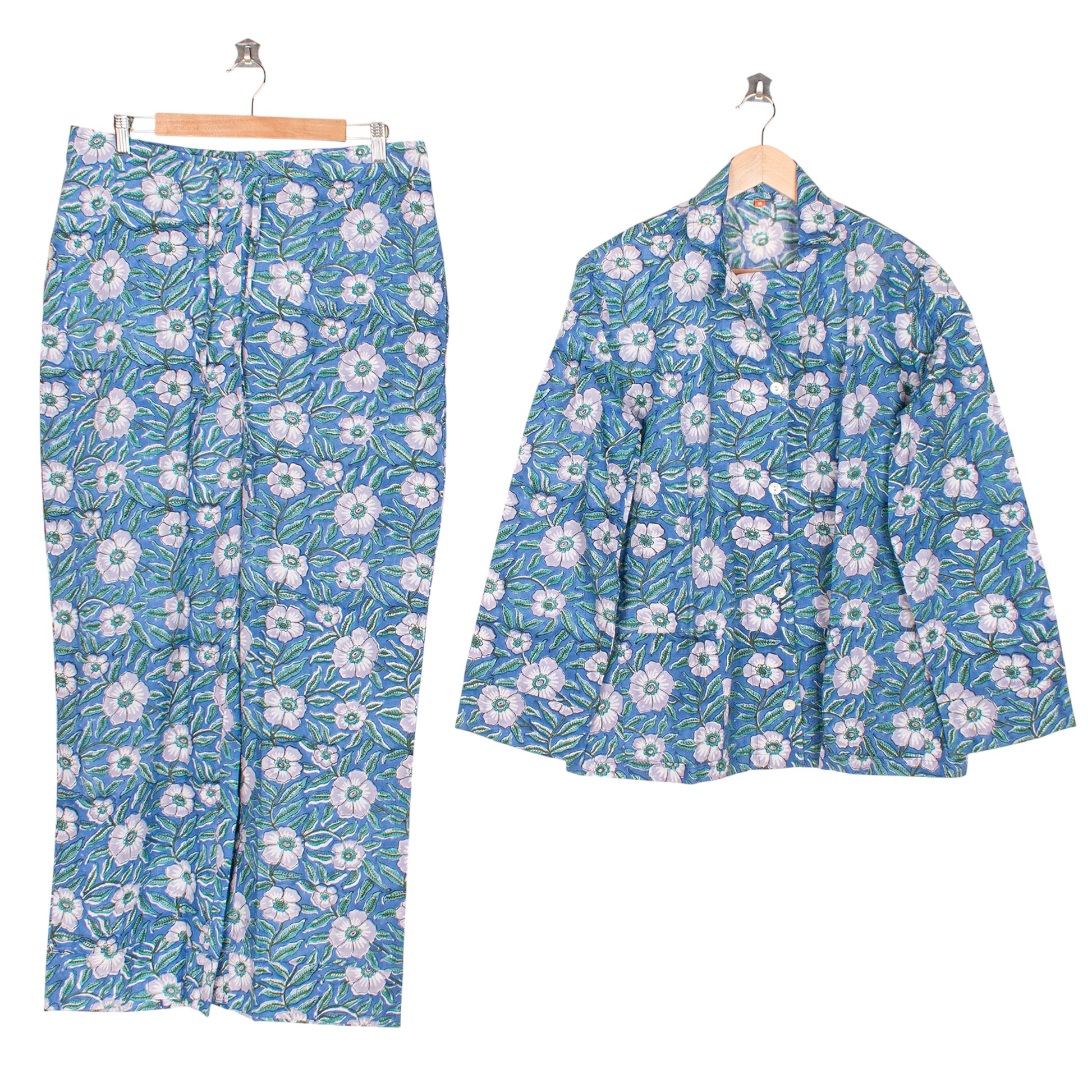Experience the perfect blend of comfort, craftsmanship, and style with our Women’s 100% Cotton Block Print PJ Set. Made from soft, breathable cotton, this pajama set keeps you cool in summer and cozy in winter, ensuring year-round comfort. Each piece is hand block printed by skilled artisans, giving your sleepwear a unique and timeless character that stands out from mass-produced designs.