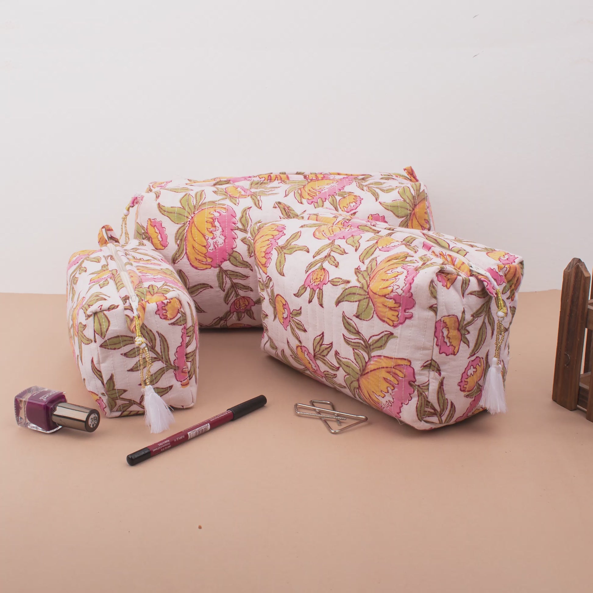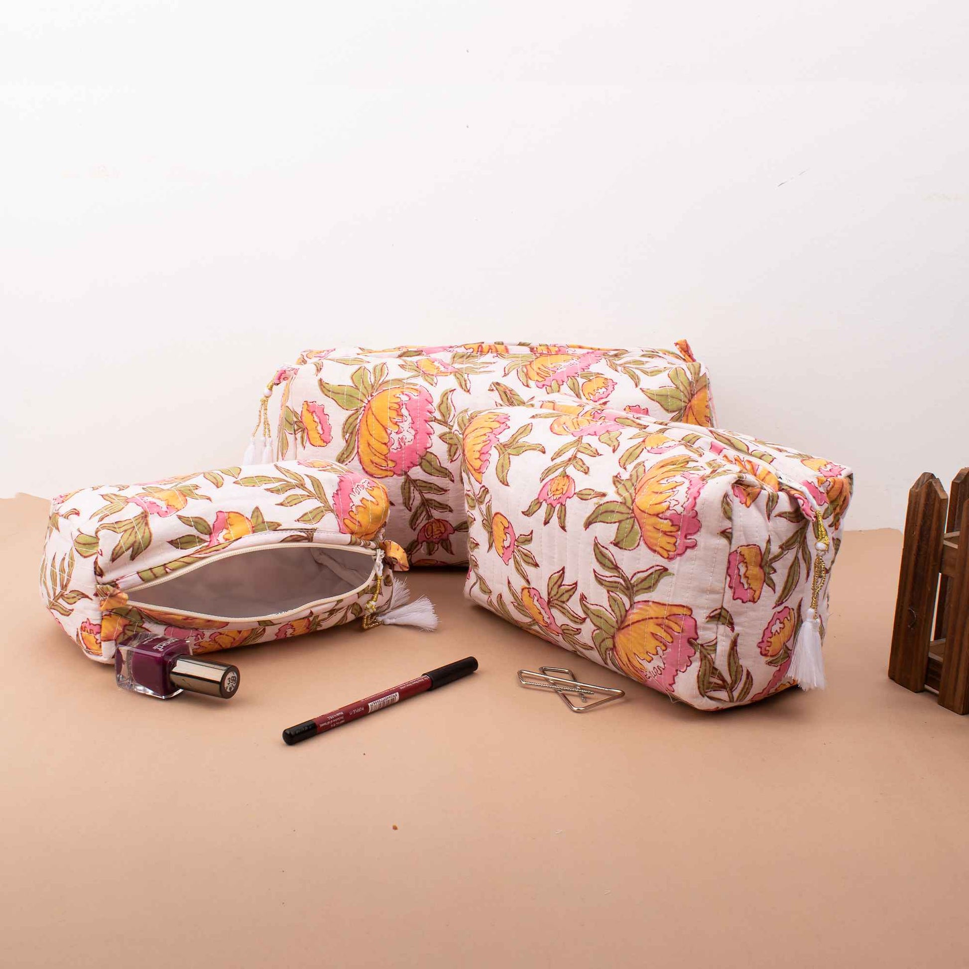 Vibrant Floral Makeup Bag Set - Bloom Beautifully