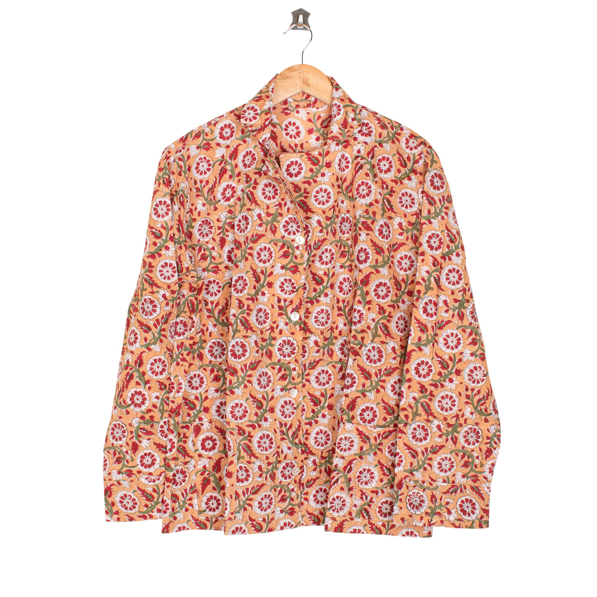 Experience the perfect blend of comfort, craftsmanship, and style with our Women’s 100% Cotton Block Print PJ Set. Made from soft, breathable cotton, this pajama set keeps you cool in summer and cozy in winter, ensuring year-round comfort. Each piece is hand block printed by skilled artisans, giving your sleepwear a unique and timeless character that stands out from mass-produced designs.