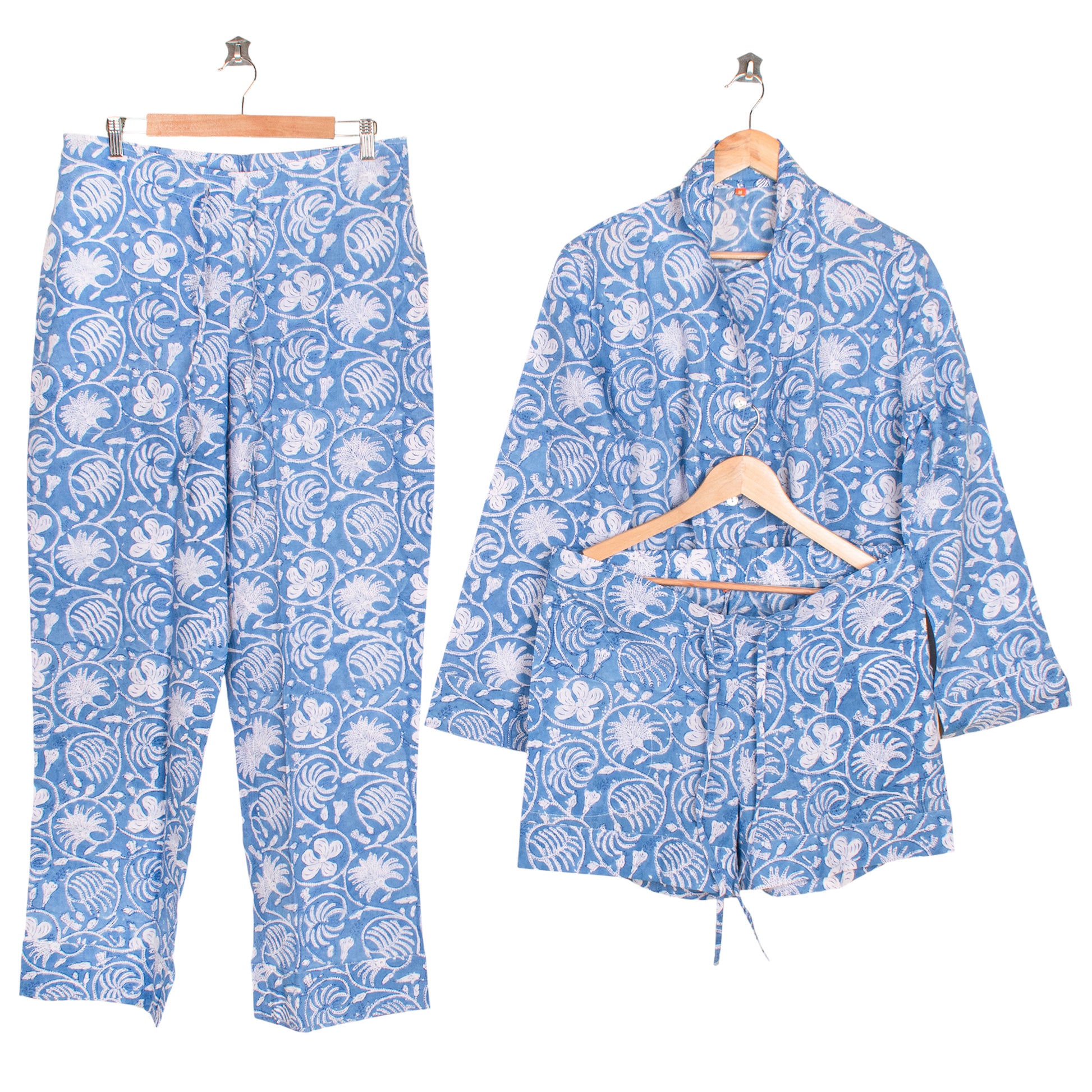 Experience the perfect blend of comfort, craftsmanship, and style with our Women’s 100% Cotton Block Print PJ Set. Made from soft, breathable cotton, this pajama set keeps you cool in summer and cozy in winter, ensuring year-round comfort. Each piece is hand block printed by skilled artisans, giving your sleepwear a unique and timeless character that stands out from mass-produced designs.